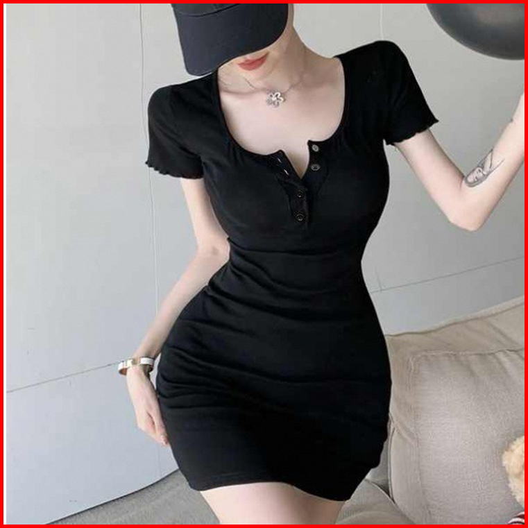 Slim Fit Bodycon Mini Dress Short Sleeve Dress Wanita Lengan Pendek 1018 S-xl