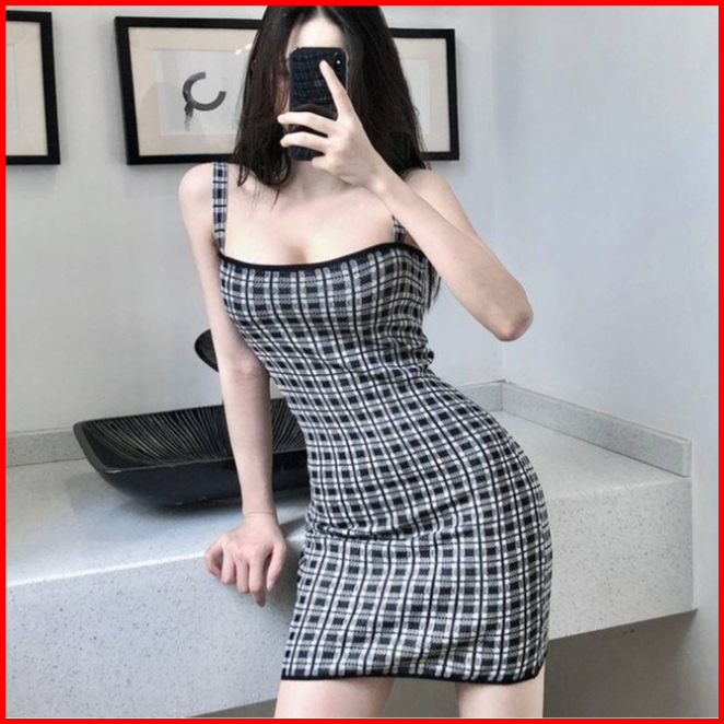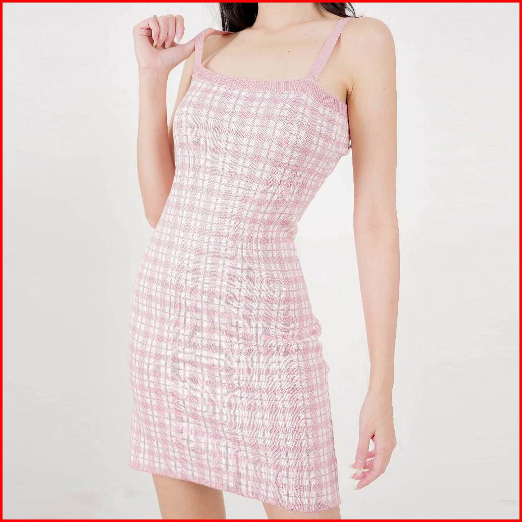 Bodycon Plaid Knitted Mini Dress Without Cardigan 2178