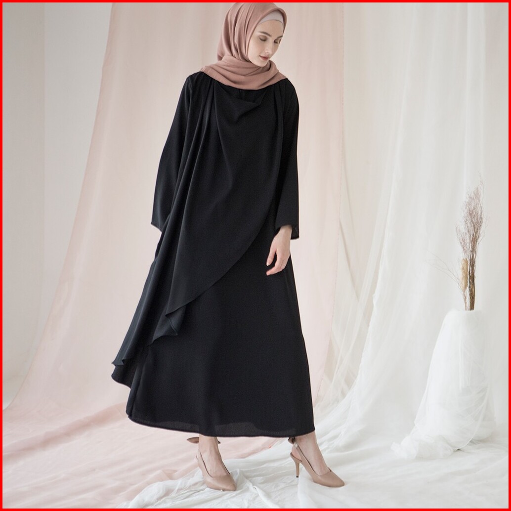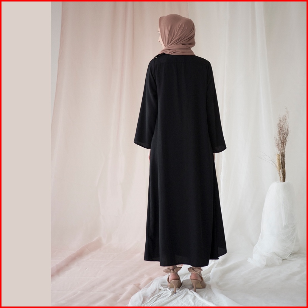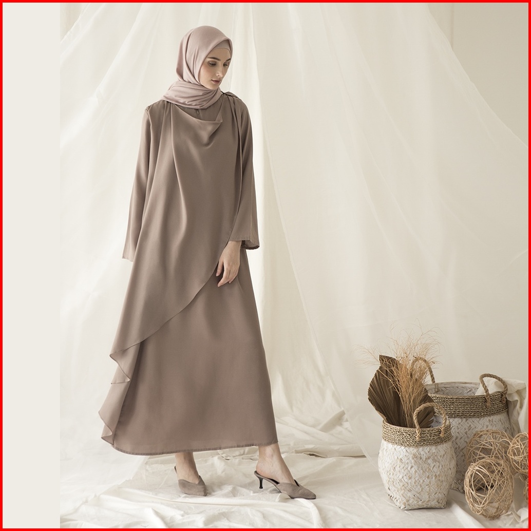Aura By Aska Label - Gamis Crepe Lengan Panjang Busui Friendly Details Drape Warna Hitam Offwhite Taupe Raspberry