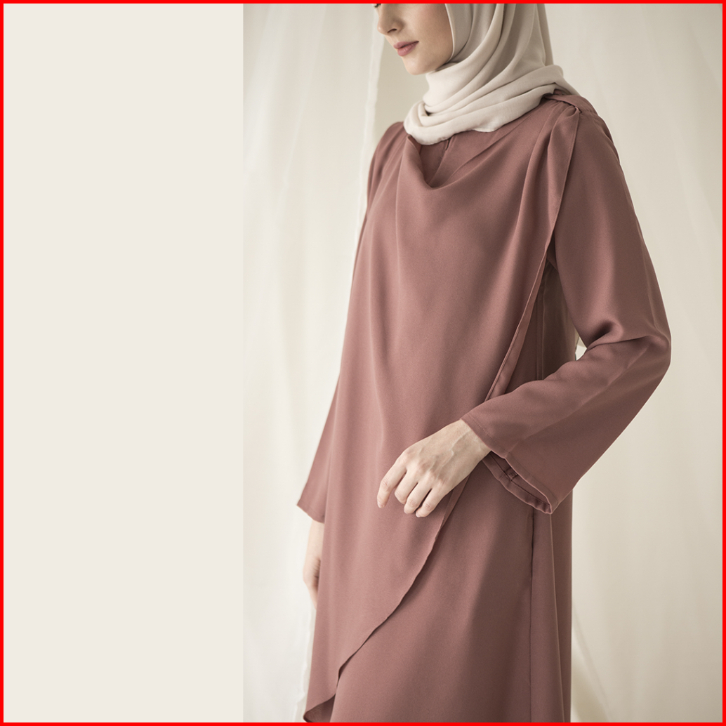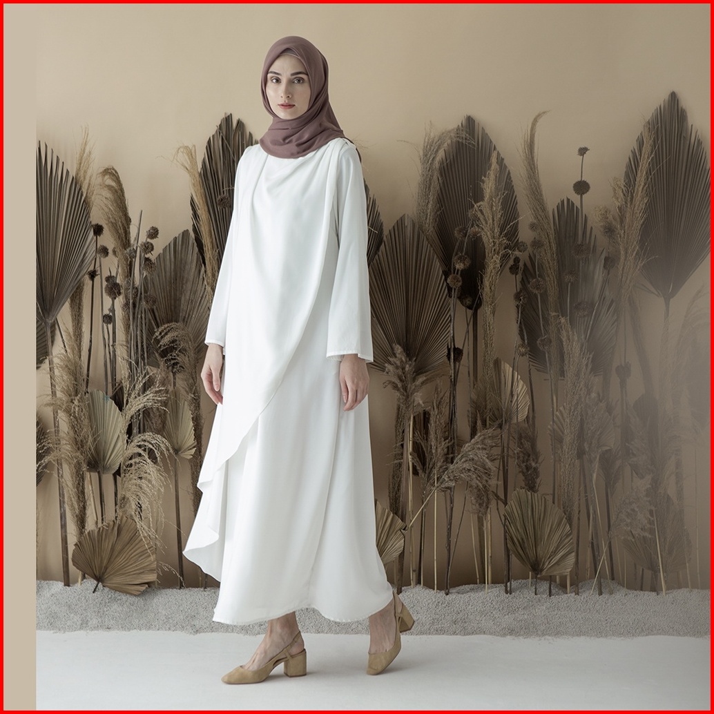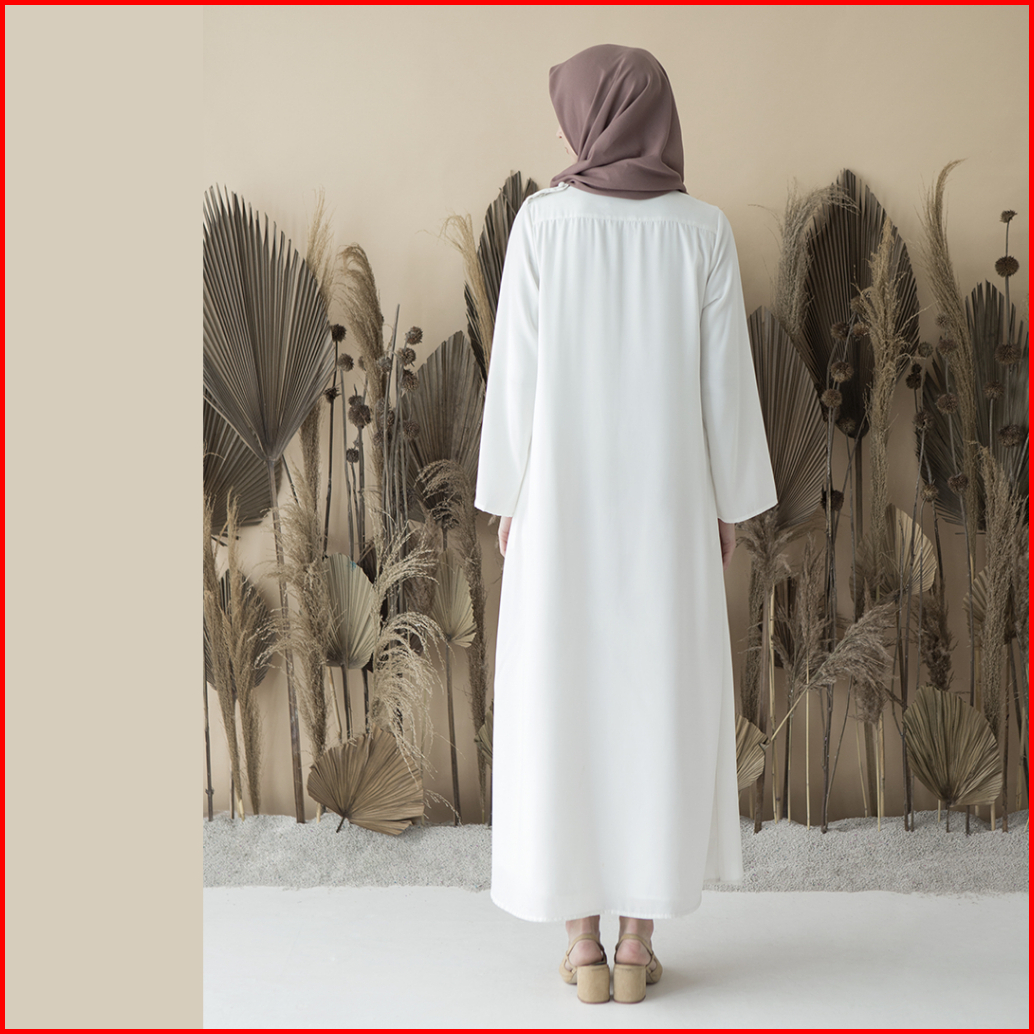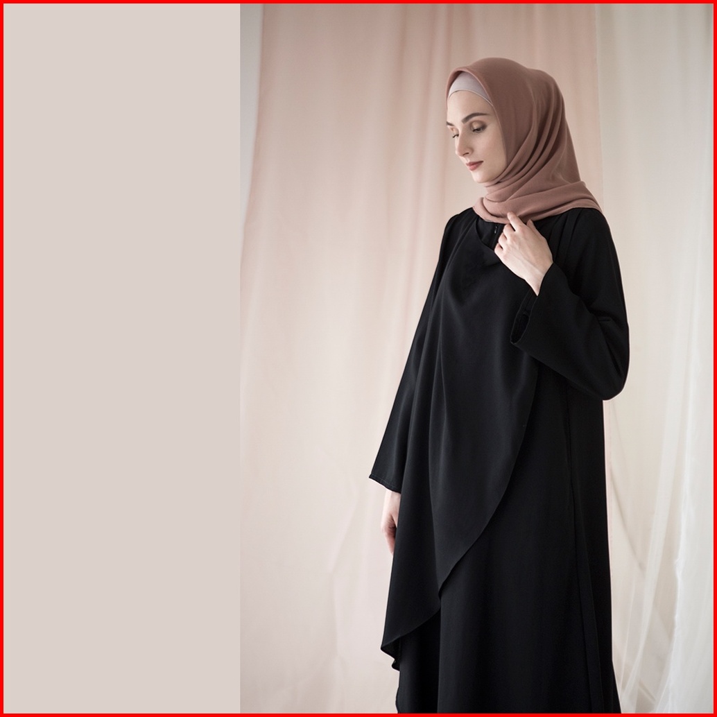 Aura By Aska Label - Gamis Crepe Lengan Panjang Busui Friendly Details Drape Warna Hitam Offwhite Taupe Raspberry