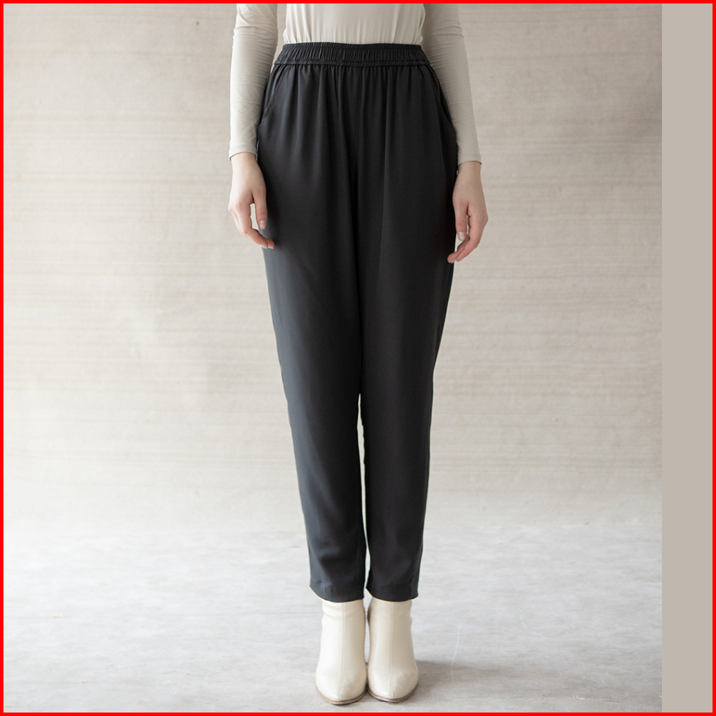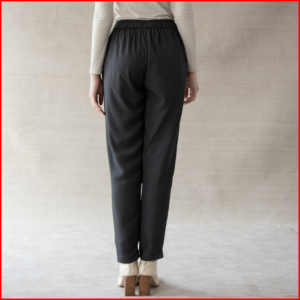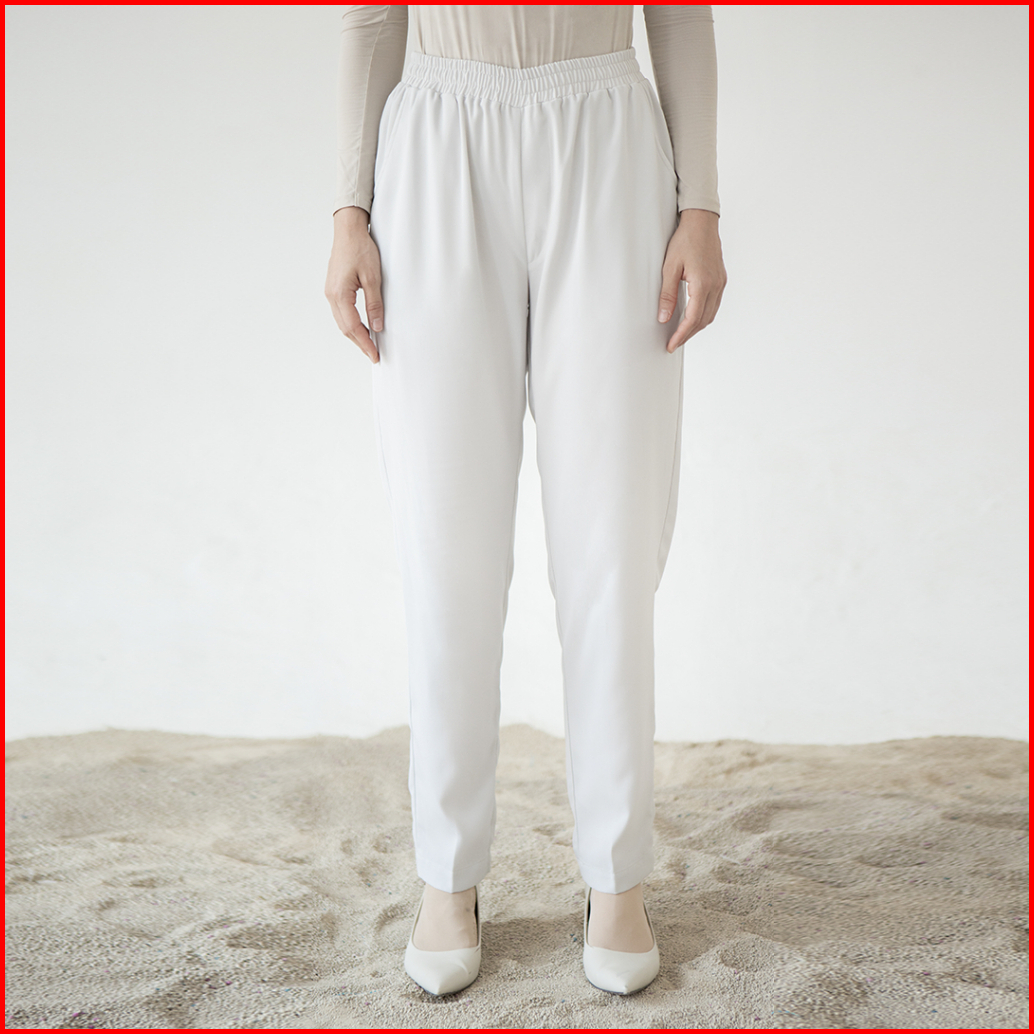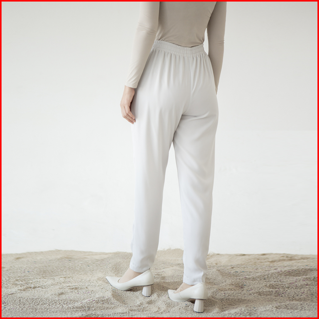 Rahma By Aska Label - Celana Panjang Wanita Lurus Pinggang Karet Warna Hitam Light Grey Olive Sand
