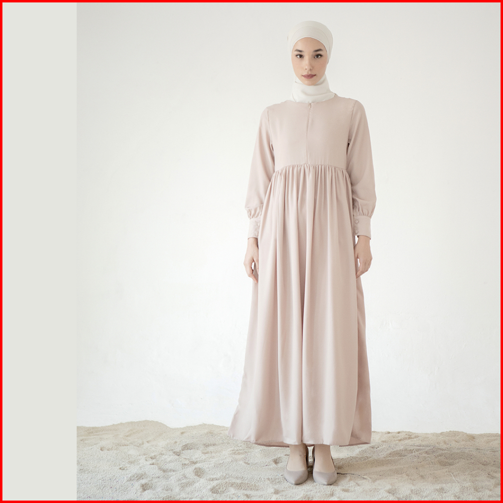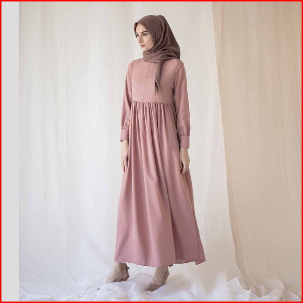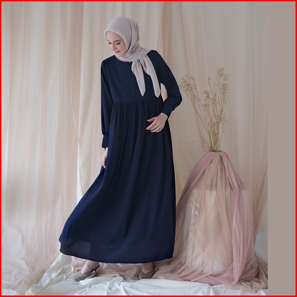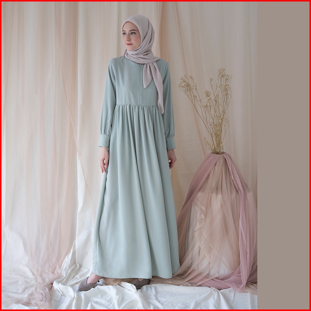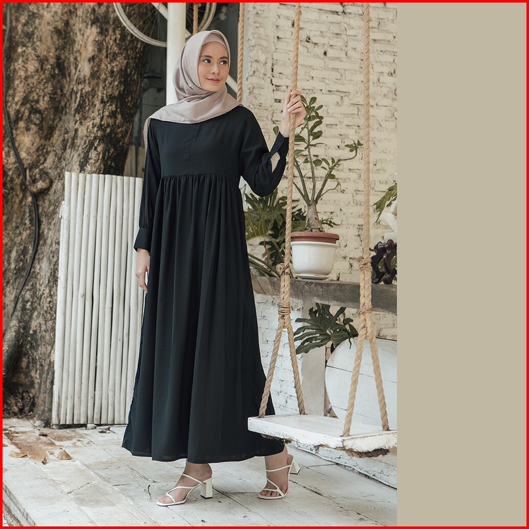 Basic Dress By Aska Label - Gamis Panjang Hitam Bermanset Busui Dan Bumil Friendly Warna Hitam Putih Hijau Sage Abu Muda