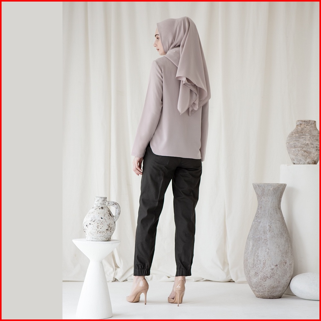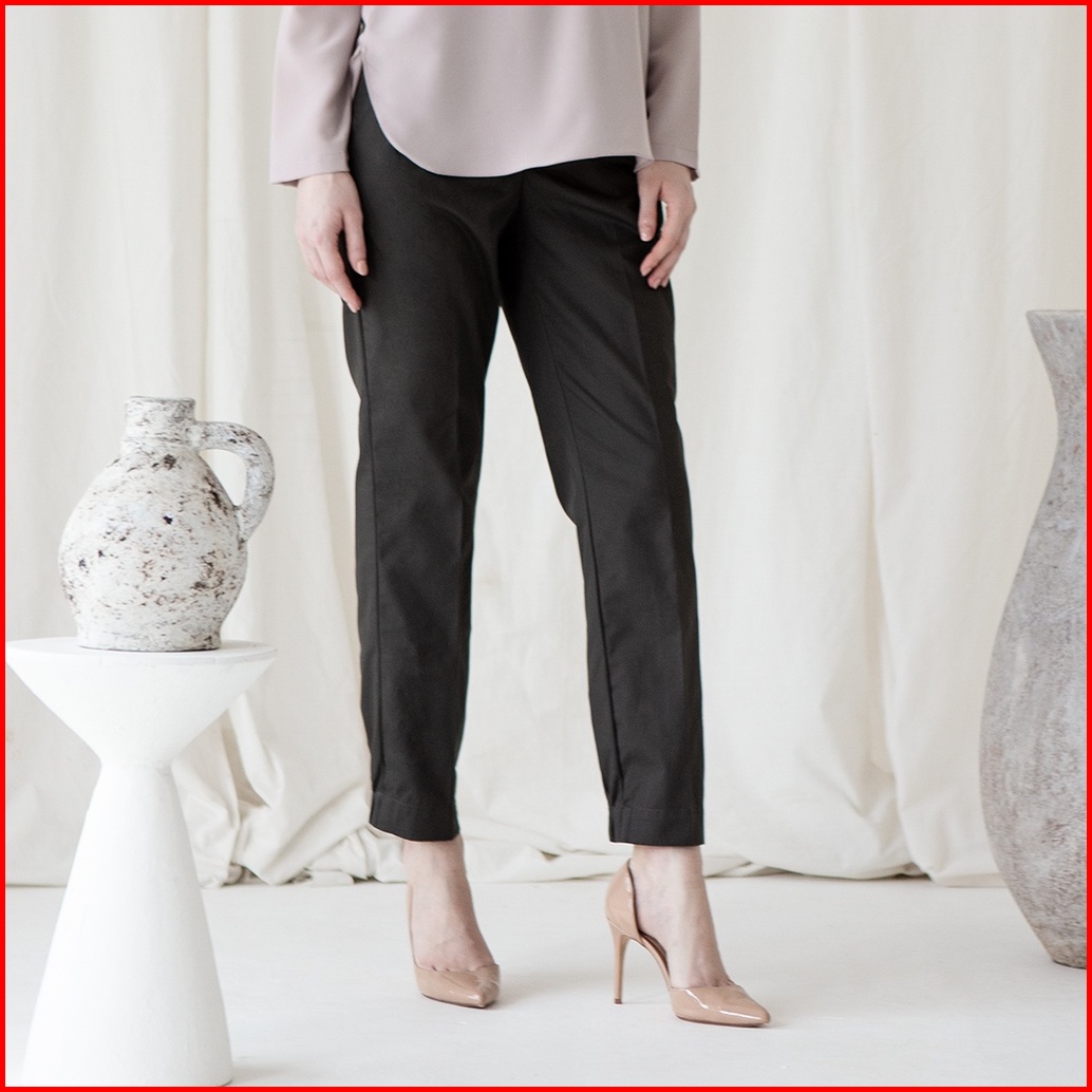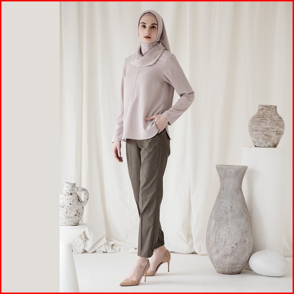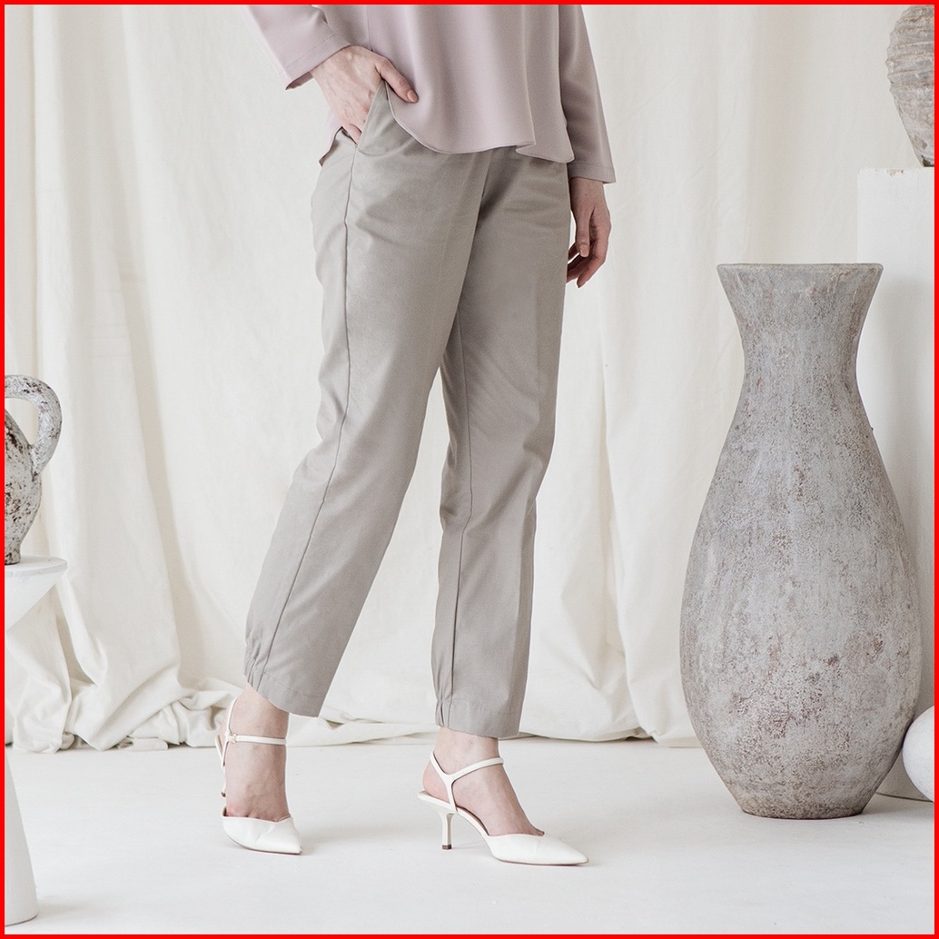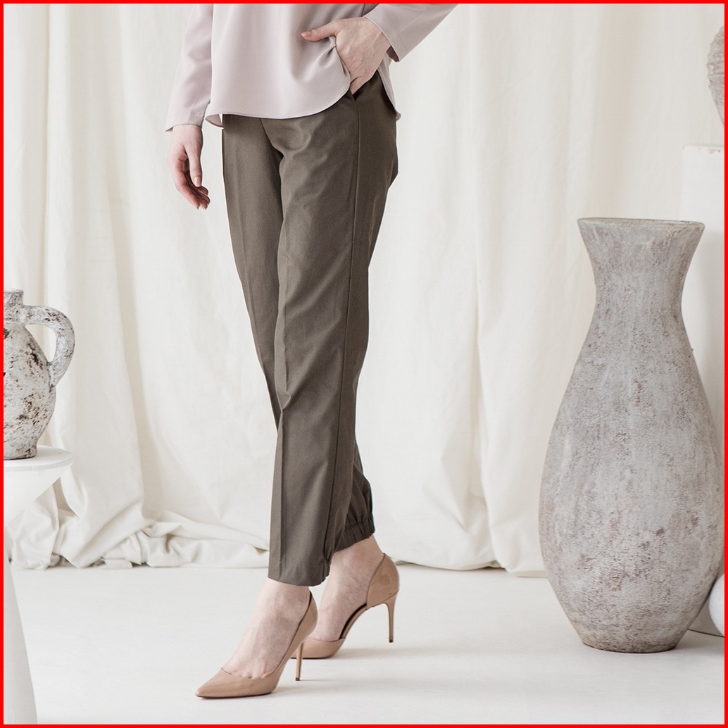 Abimana By Aska Label - Celana Panjang Wanita Katun Semi Casual Kantor Warna Abu Muda Hijau Olive Hijau Olive Gelap
