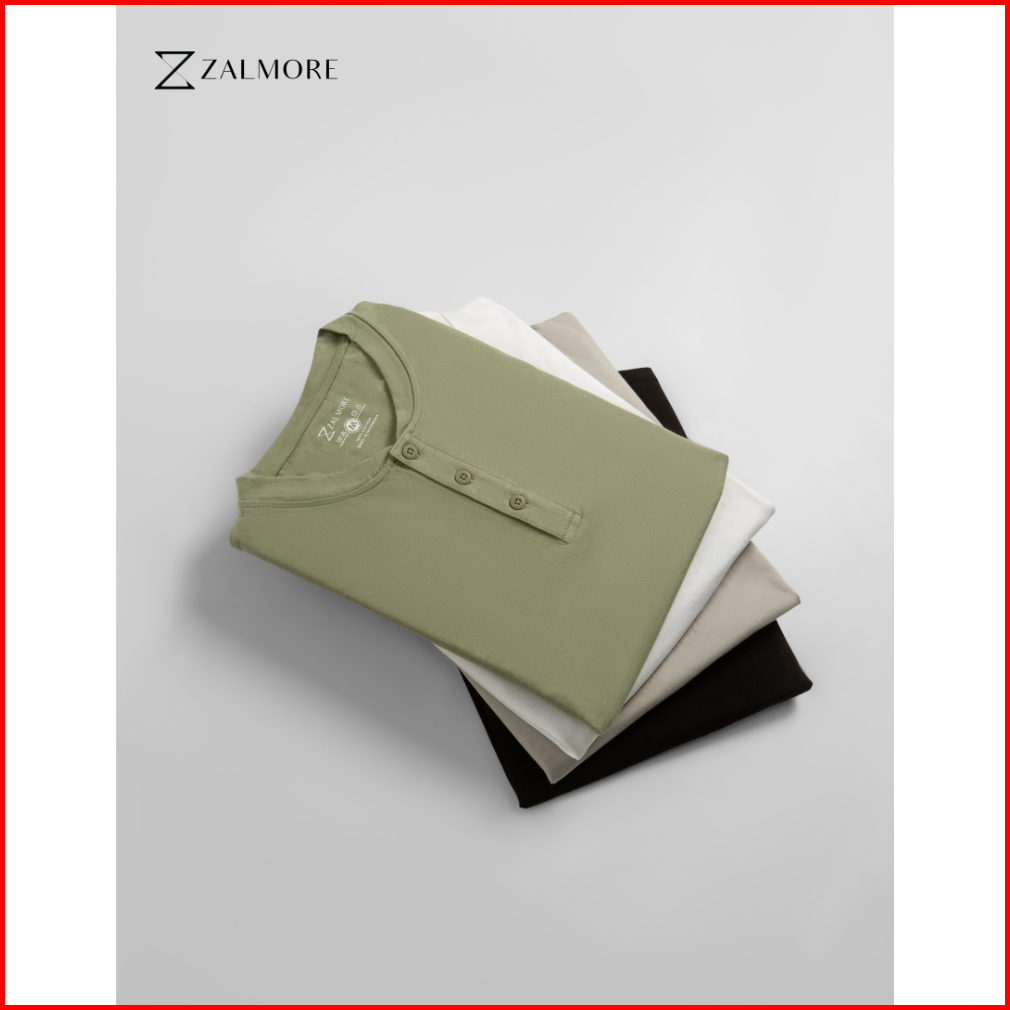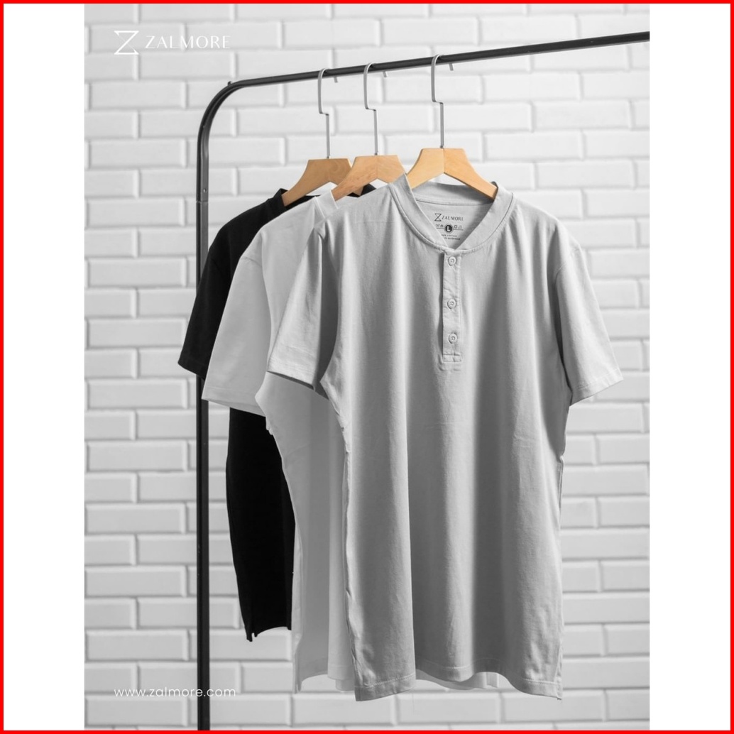 Zalmore Luma Cotton Henley Tee Premium Cotton - Kaos Henley Pria