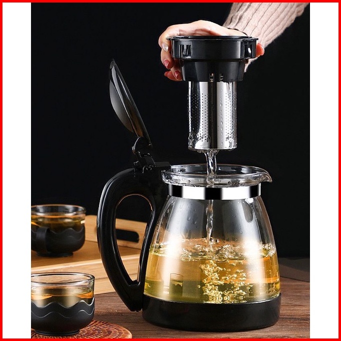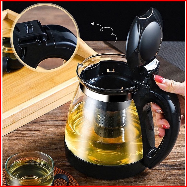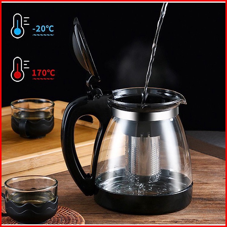 Zenteko Teh Kopi Kaca Transparan Dengan Saringan Stainless Kaca Teapot Glass Elegan