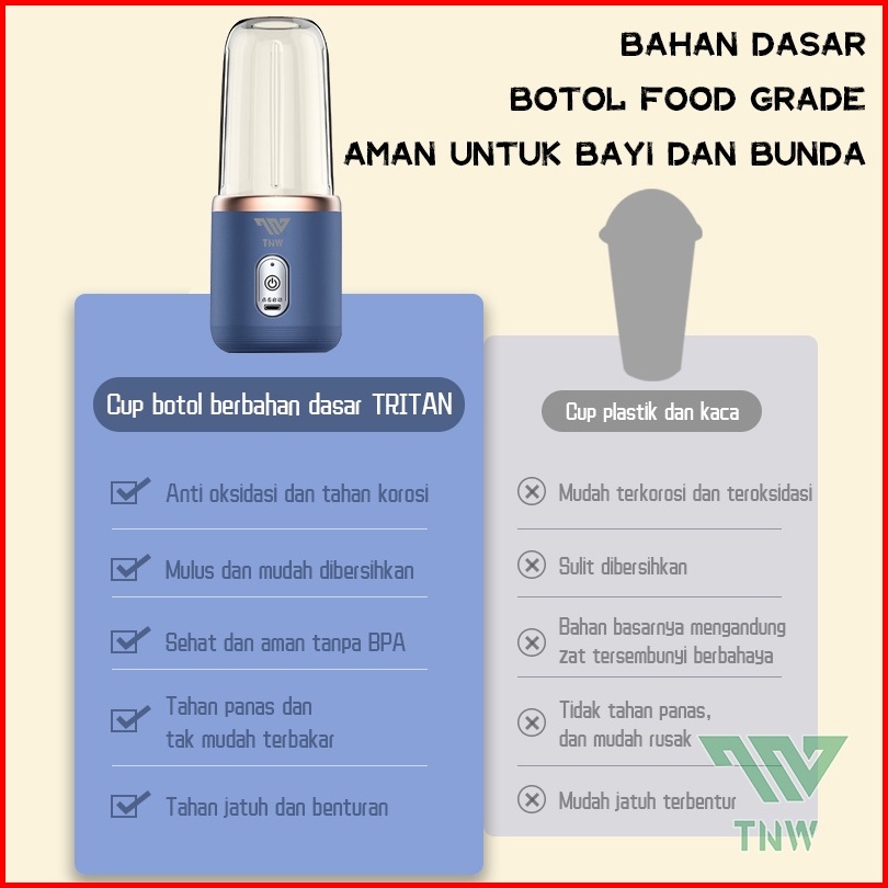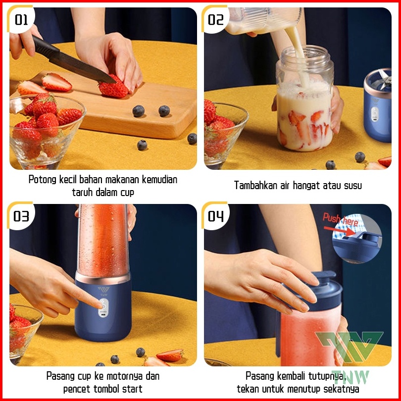 Tnw Kj4 Juice Blender 6 Pisau Mini Juicer Portable Pembuat Jus Elektrik 2400mah Rechargeable Ice Crusher