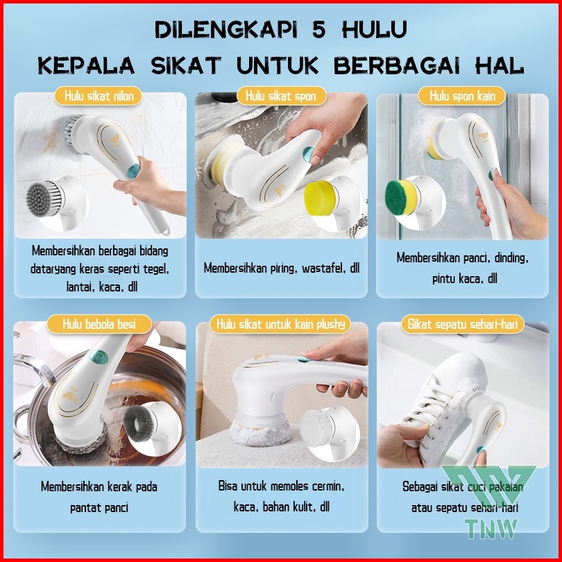 Tnw Kc5 5 In 1 Electric Cleaning Brush Sikat Pembersih Listrik Wireless Handheld Cleaner Rechargeable Spin Scrubber Wate