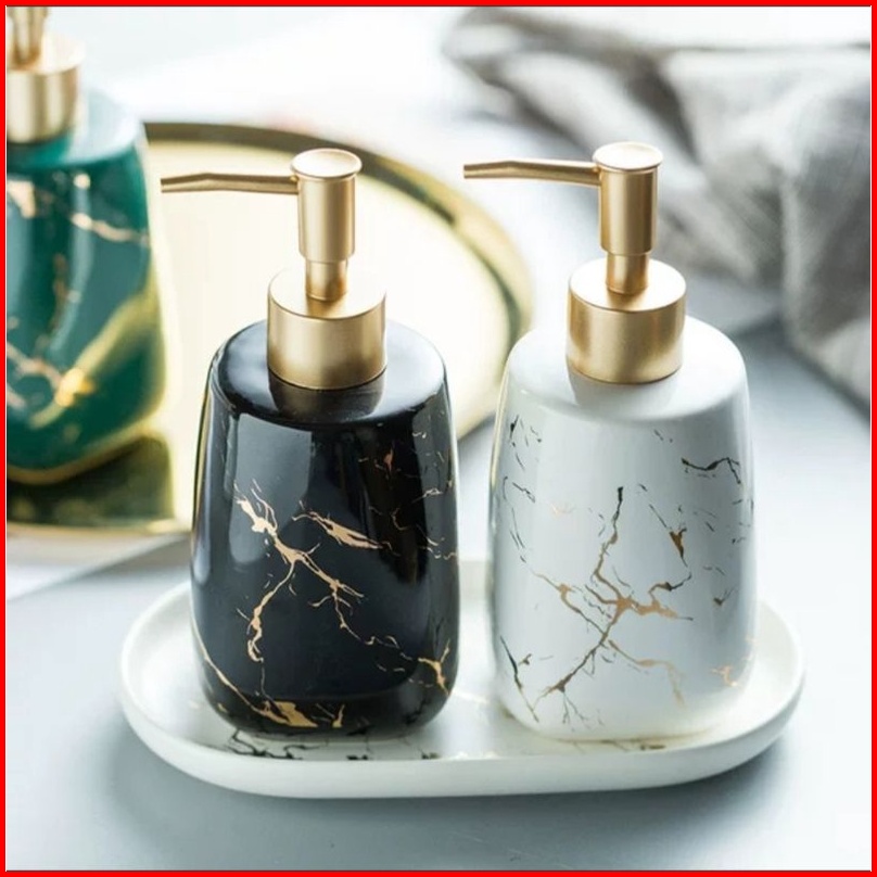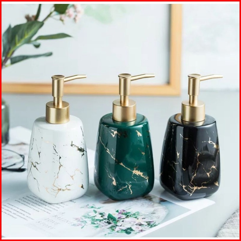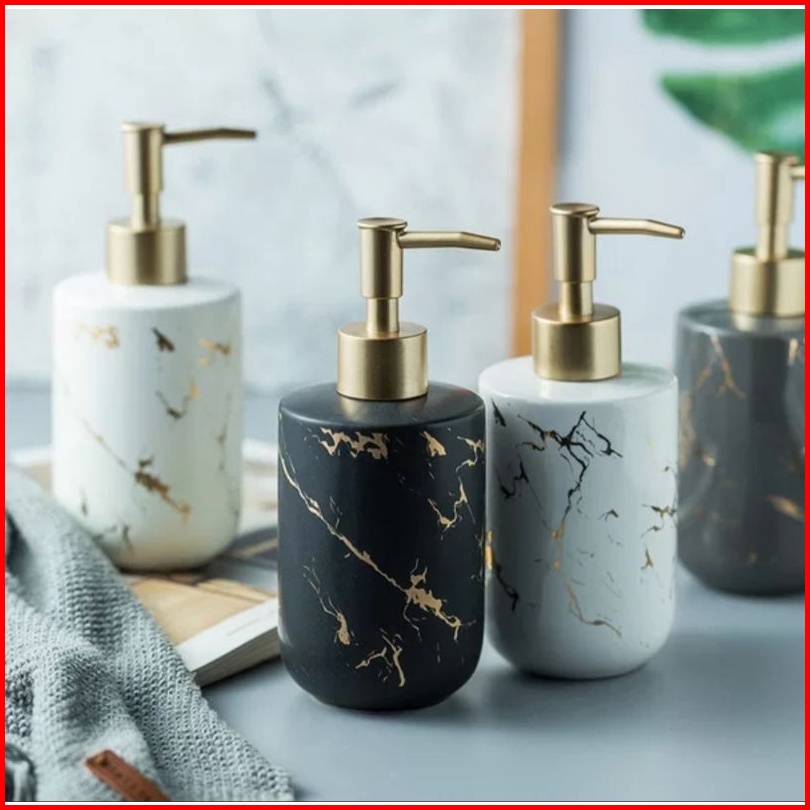 Aveline Refill Pump Bottle Marble Ceramic Soap Dispenser Botol Keramik Motif Marmer Sabun Soap Dispenser Marble
