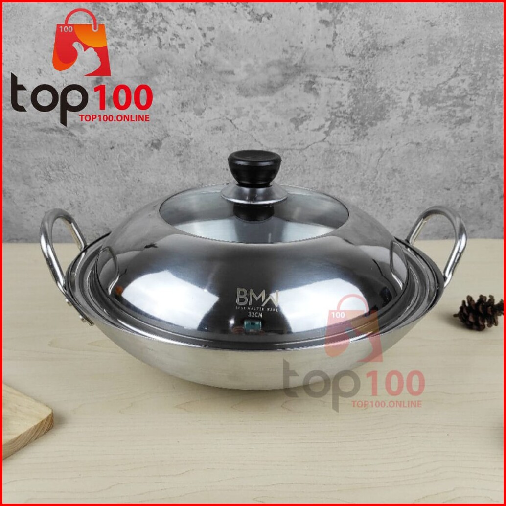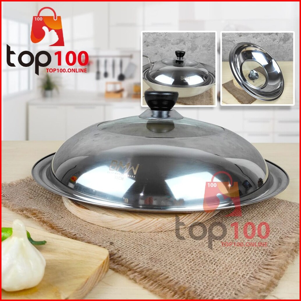 Top100 - Tutup Panci Stainless Steel Tutup Wajan Penutup Kuali Pentol Knop Handle Penggorengan Tutup Wok Pan Anti Panas
