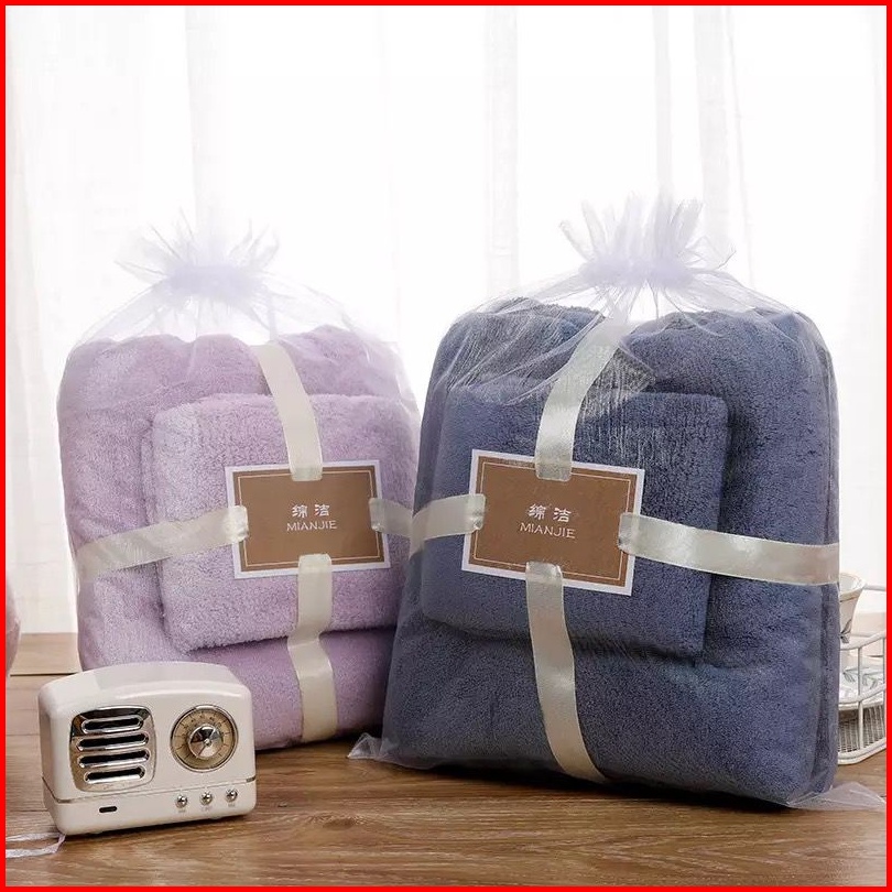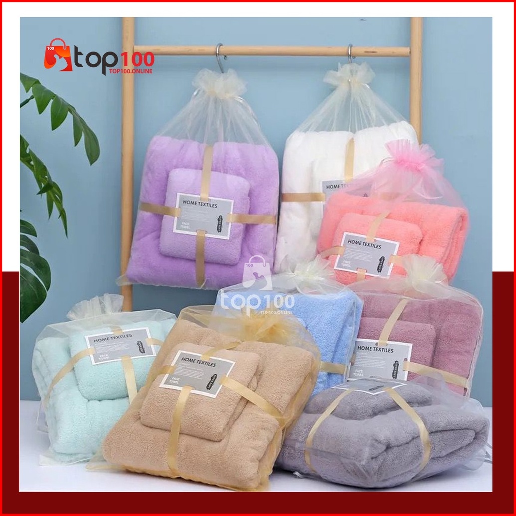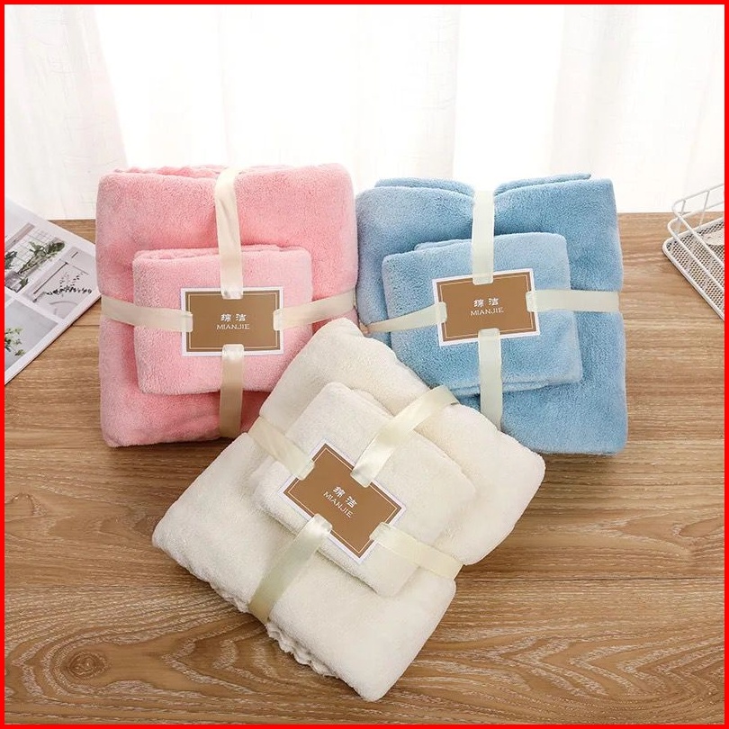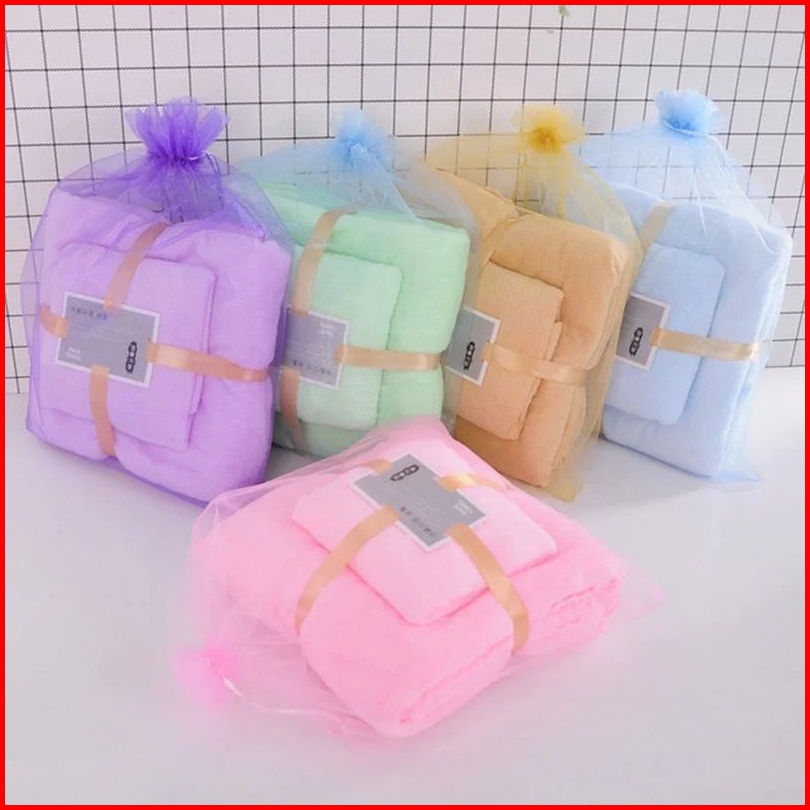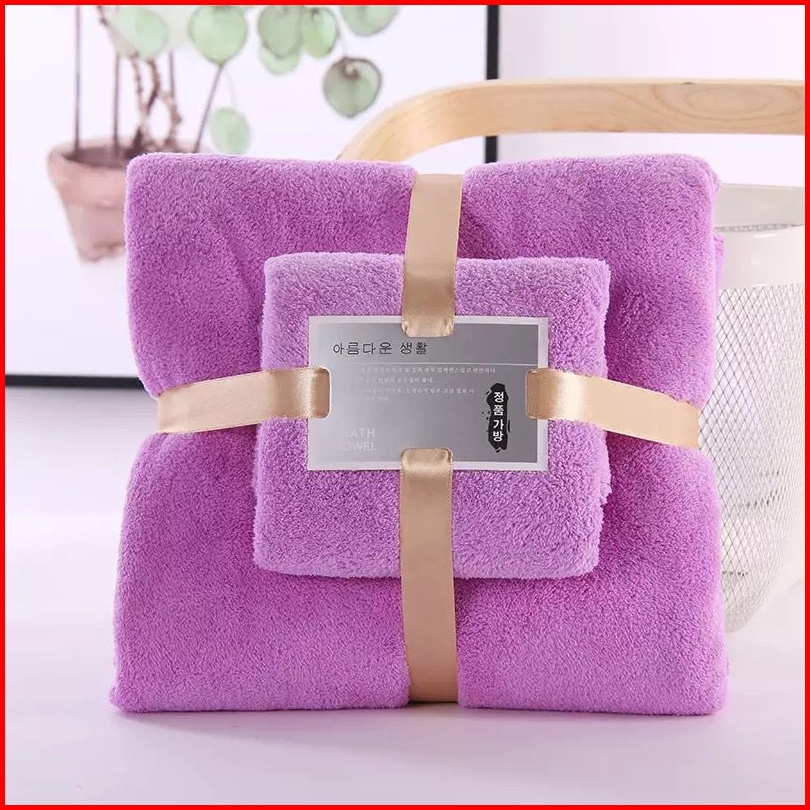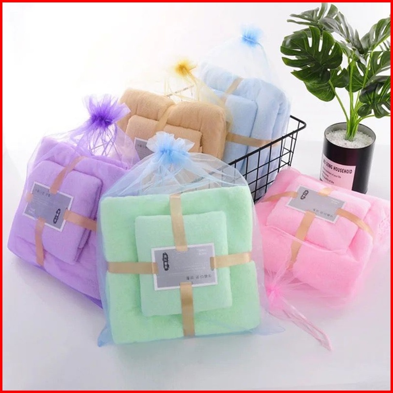 Top100 - Handuk Set 2in1 Handuk Mandi Dan Cotton Towel Dewasa Handuk Lembut Hampers Souvenir Handuk Korea Murah