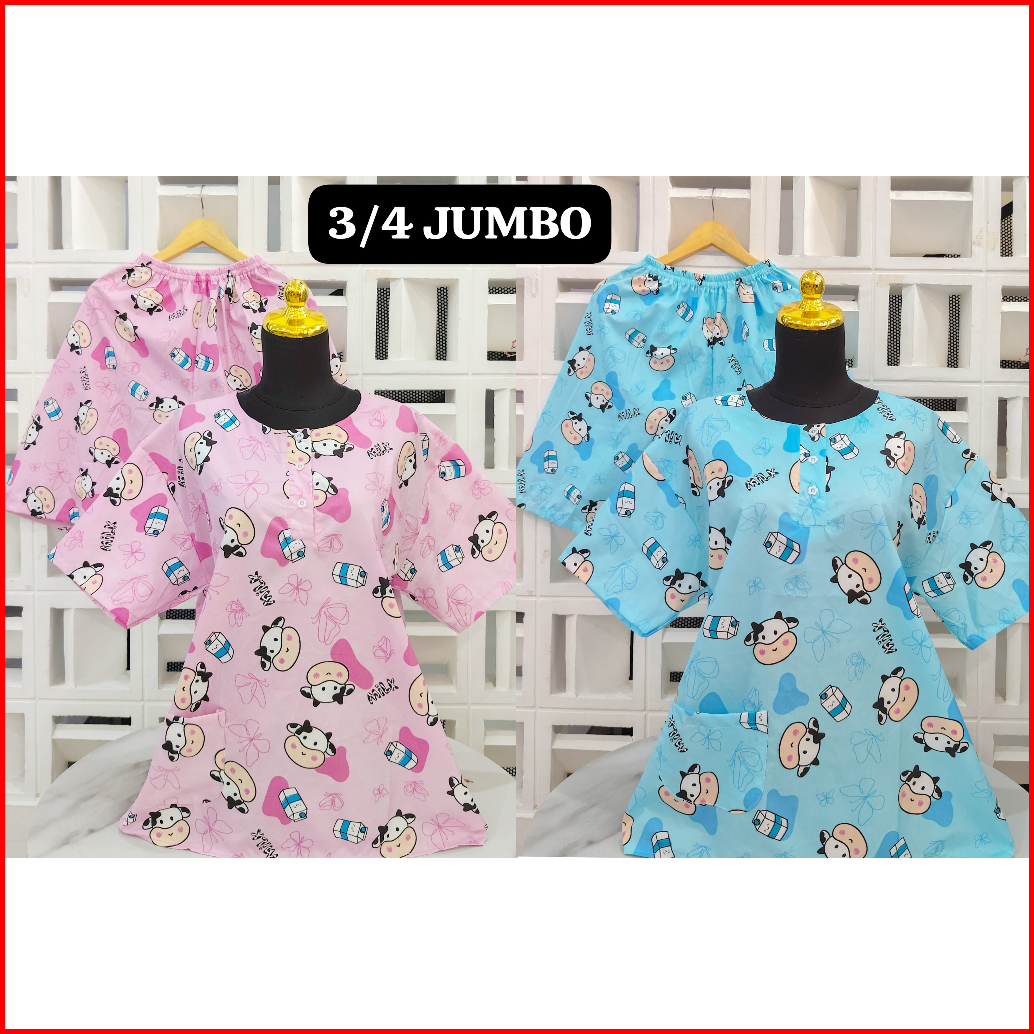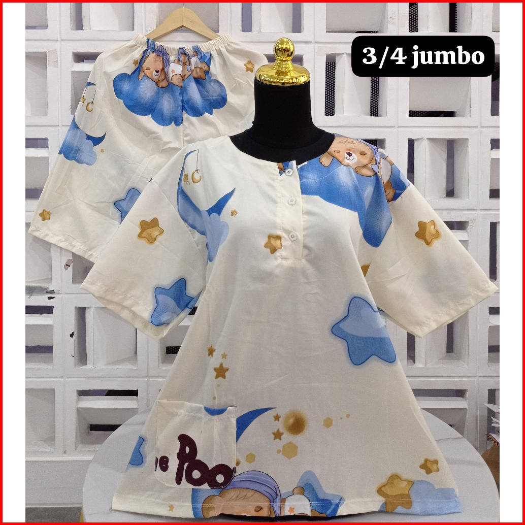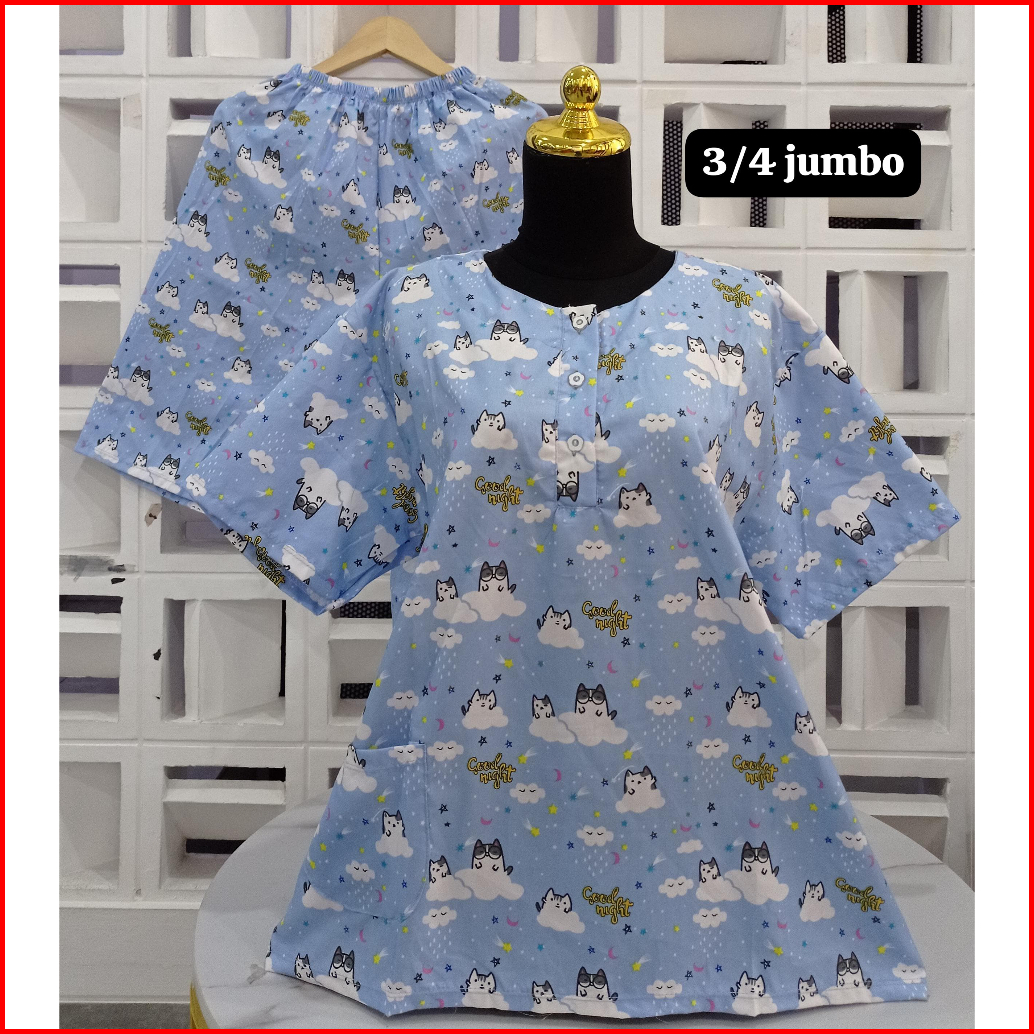 Dtree . Piyama Stelan Pendek Jumbo Katun Motif Karkter Baju Tidur Wanita Kancing Depan Ld 120 Cm
