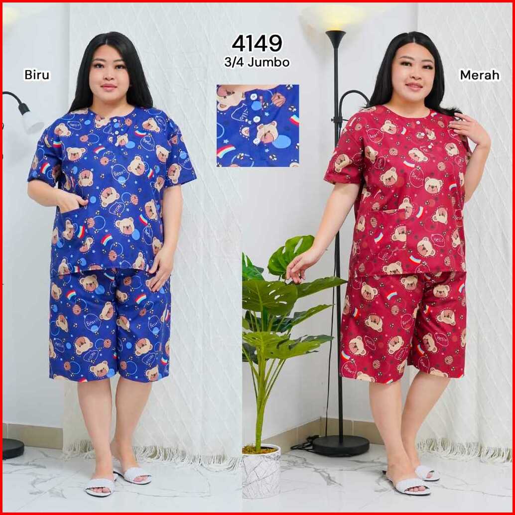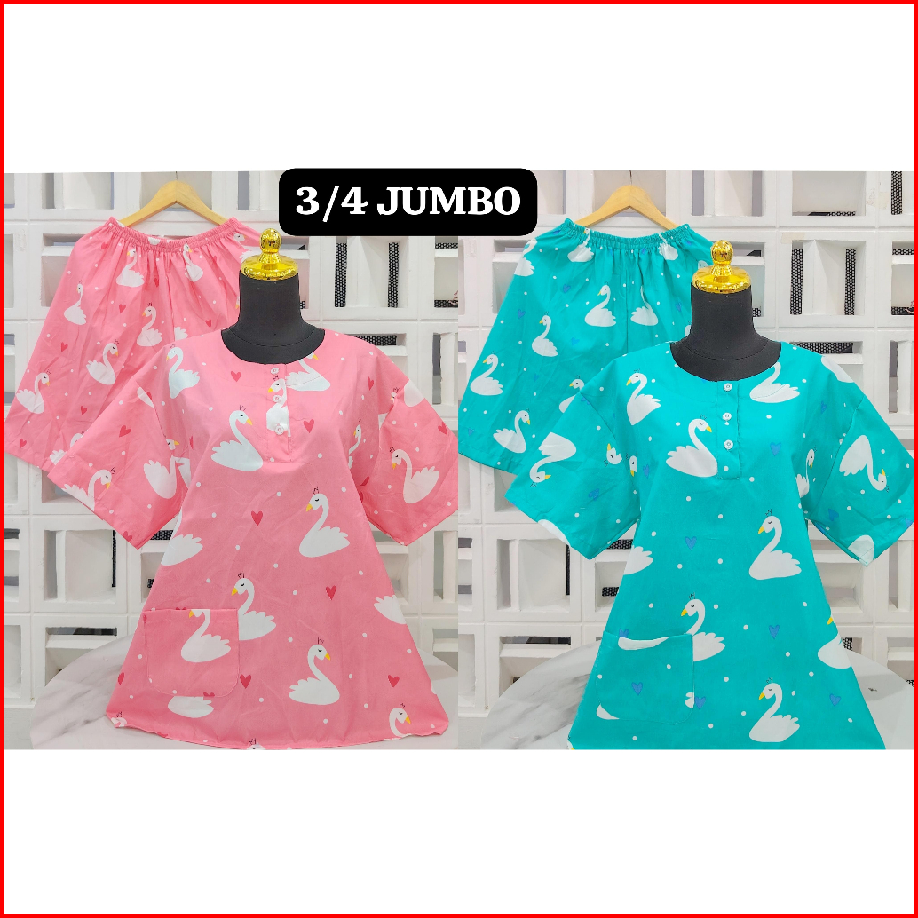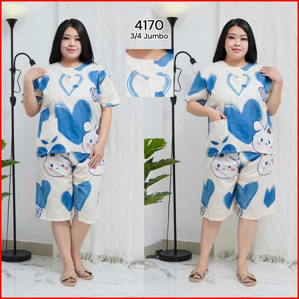 Dtree . Piyama Stelan Pendek Jumbo Katun Motif Karkter Baju Tidur Wanita Kancing Depan Ld 120 Cm