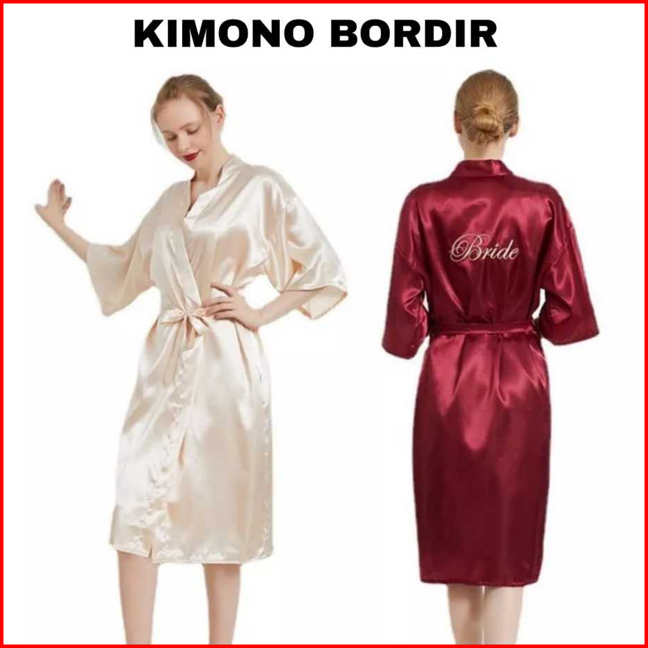 Dtree . Gaun Kimono Bridesmaid Wedding Bordir Bride Gaun Kimono Bridal Shower Satin Velvet