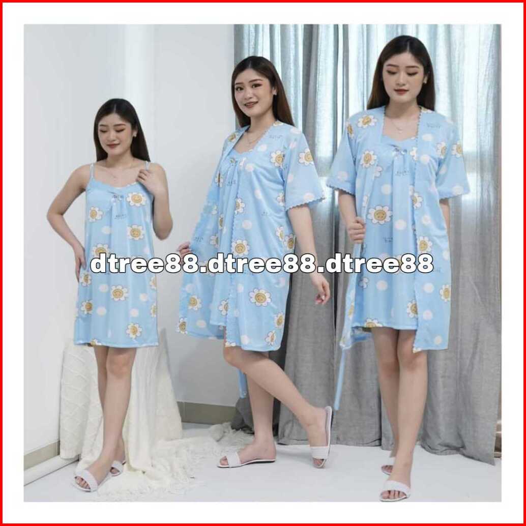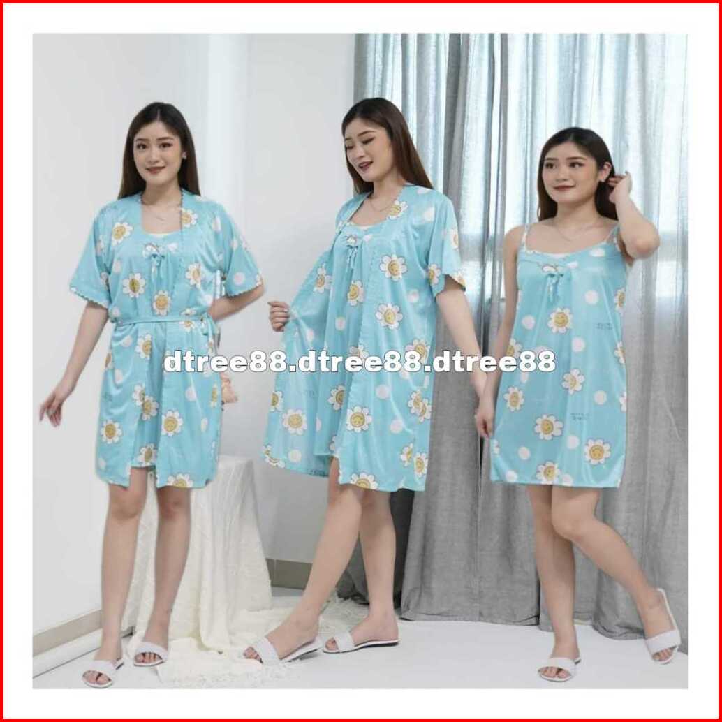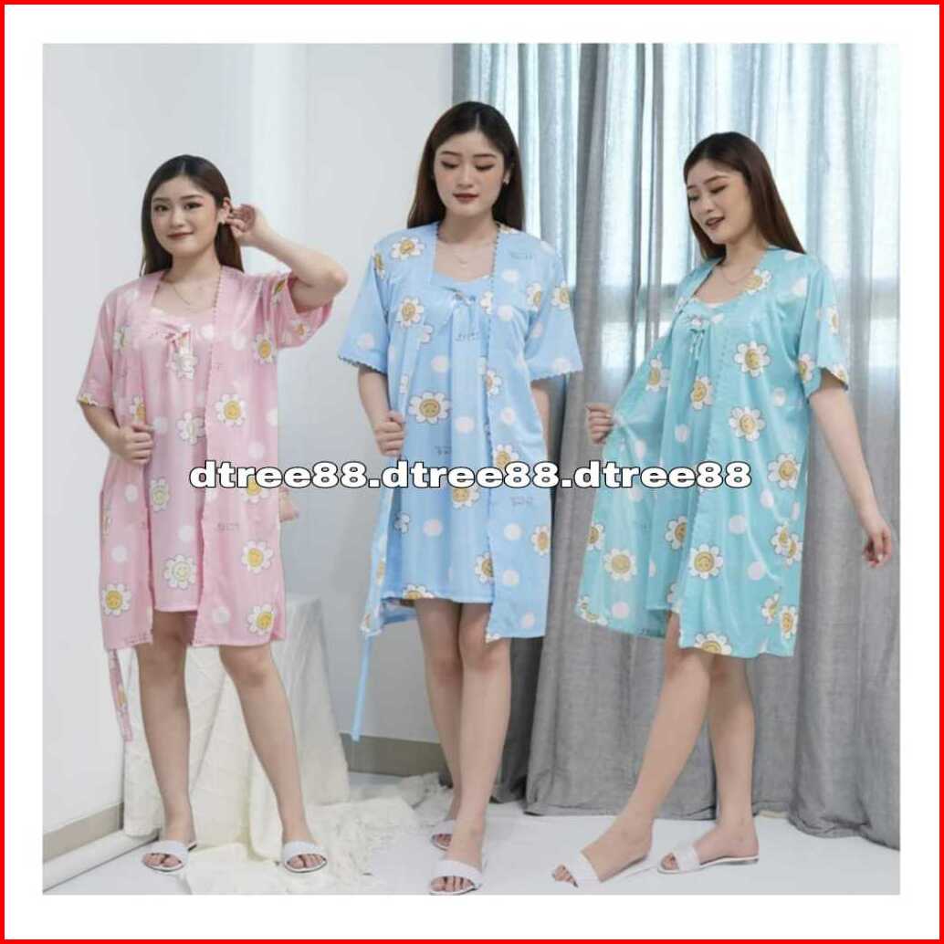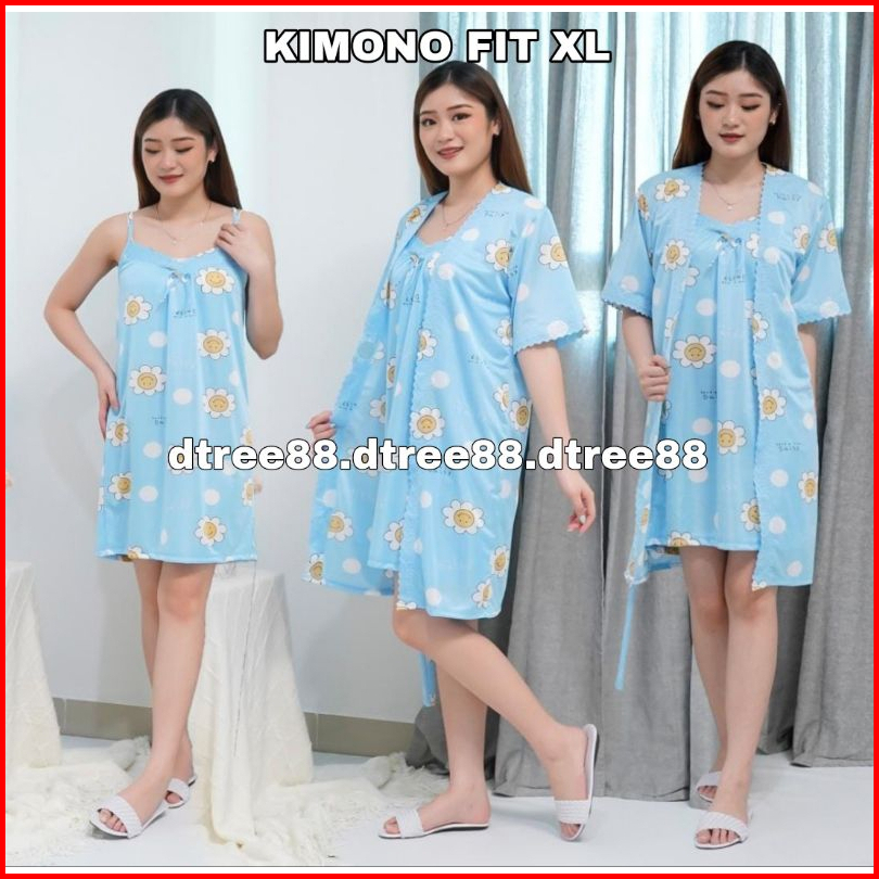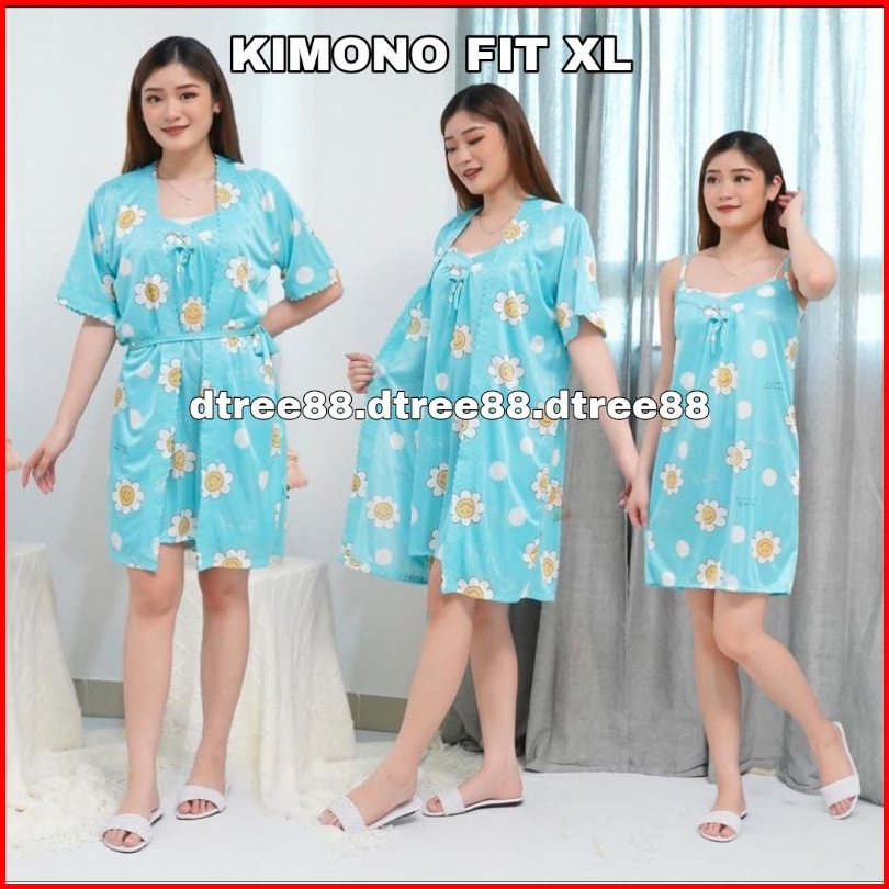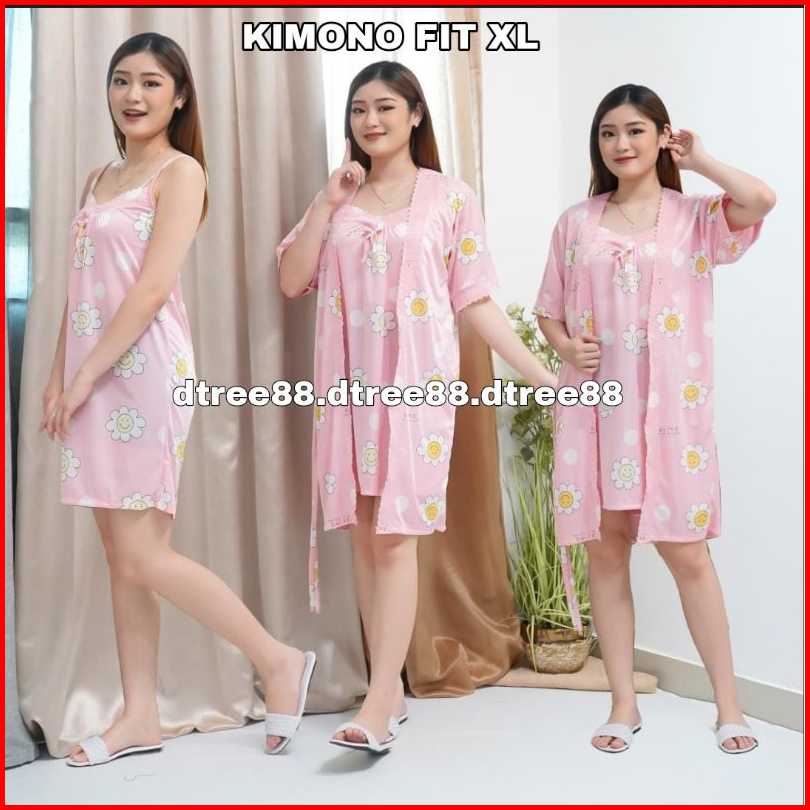 Dtree . Kimono 2in1 Satin Ice Silk Motif Daisy Dress Kimono 2in1 Size Xl Dan Xxl 359 360
