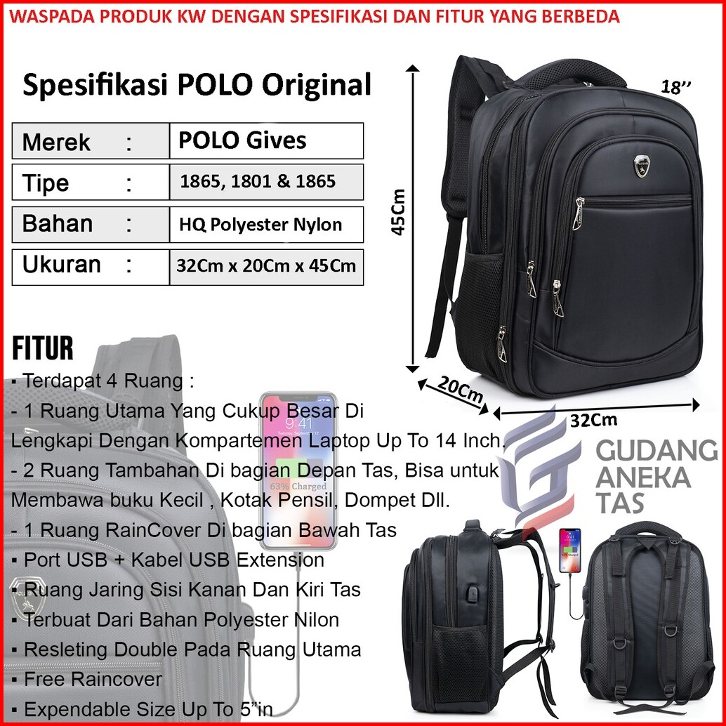 Polo Gives Tas Ransel Polo Original Import 18 Inch Free Raincover Free Usb Ransel Sekolah Import