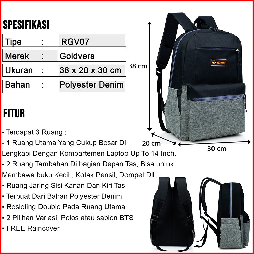 Goldvers Ransel Sekolah Original Brand Tas Anak Laki Laki Perempuan Sd Tk Backpack Ngaji Les Import