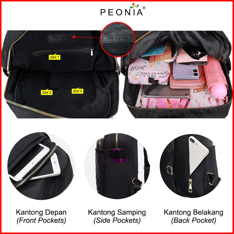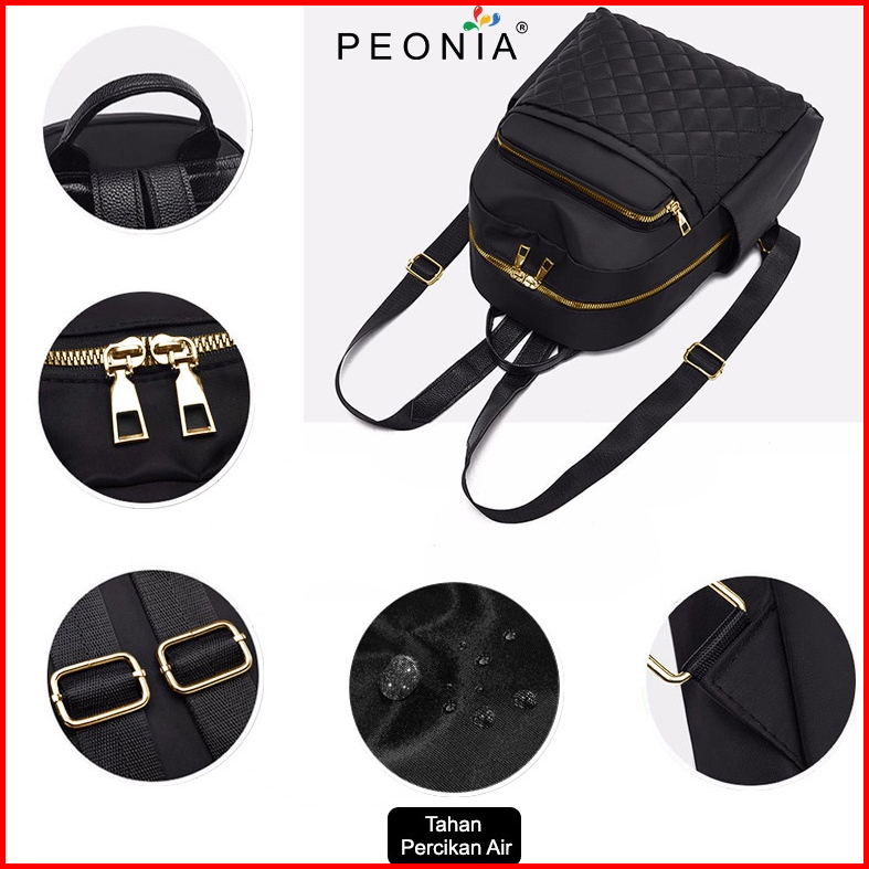 Peonia Pna Genna Water Resistant Tas Ransel Wanita Import Korean Style Punggung Kantor Kerja Sekolah Kuliah Outdoor Tren