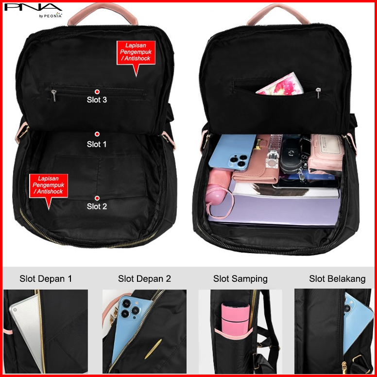 Peonia Pna Erika Water Resistant Tas Ransel Wanita Import Korea Style Unisex Laptop Punggung Kantor Kerja Sekolah Kuliah