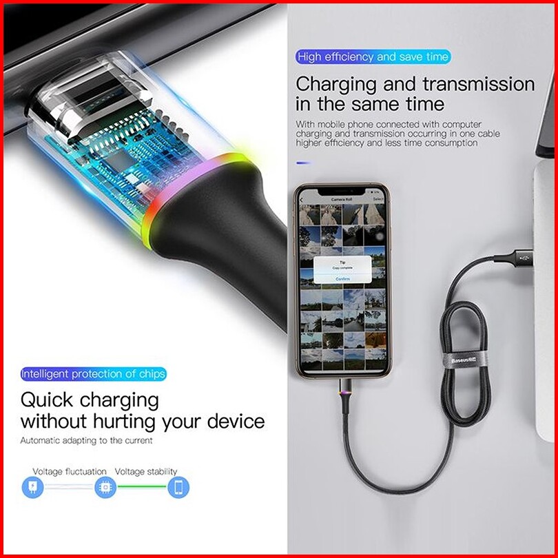 Kabel Data Led Baseus Halo Fast Charging Iphone Micro Usb Type-c 1m