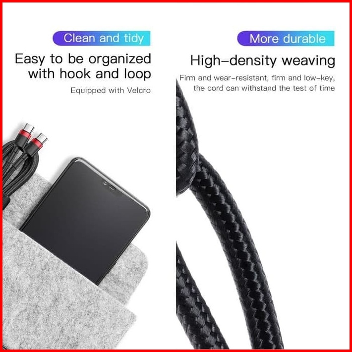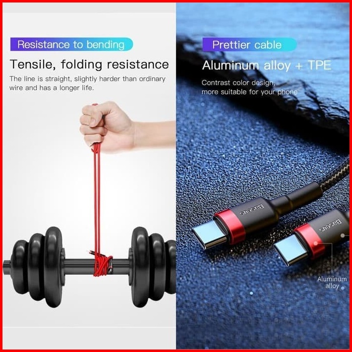 Kabel Data Baseus Cafule Type-c To Usb C Cable Pd2.0 60w Fast Charging 20v 3a
