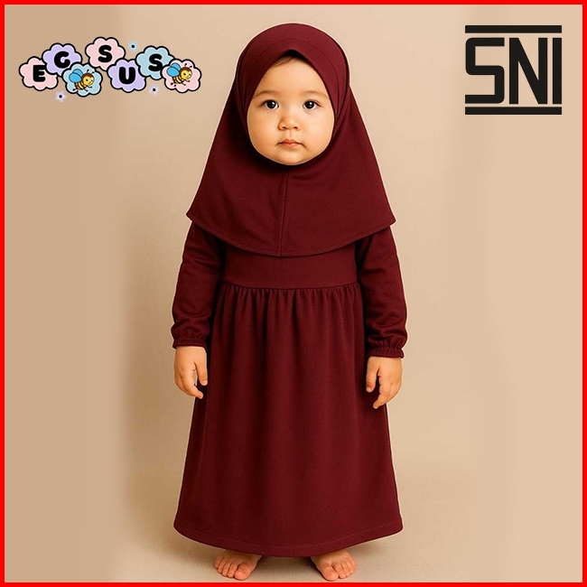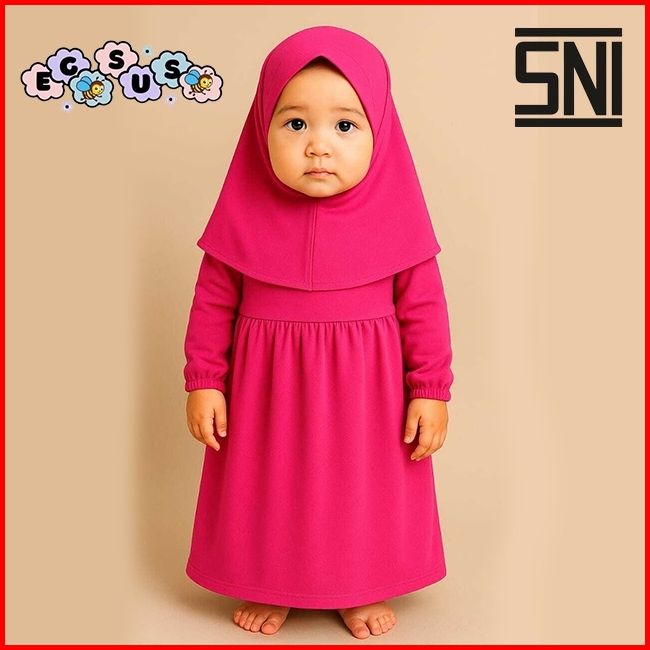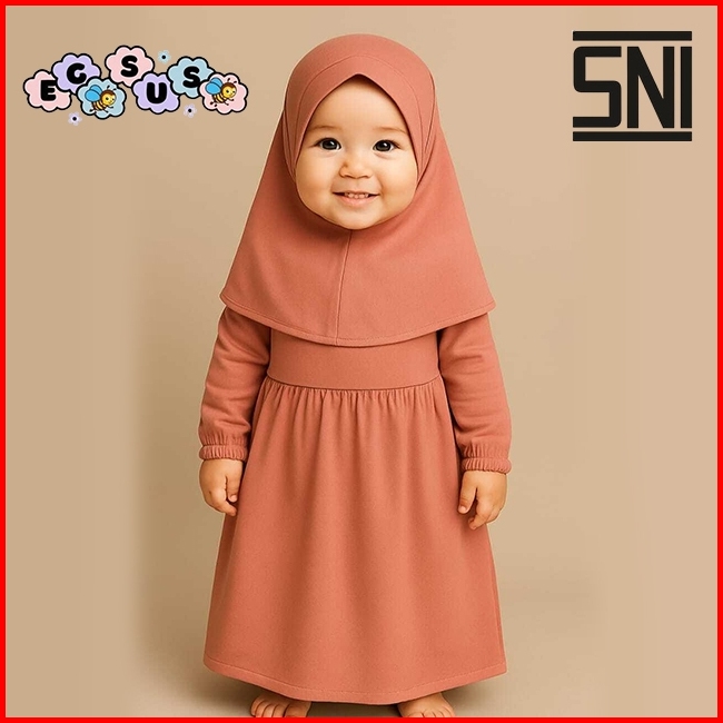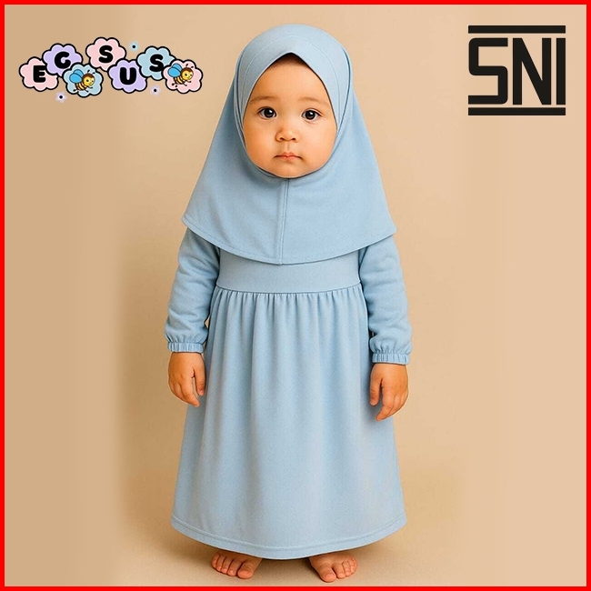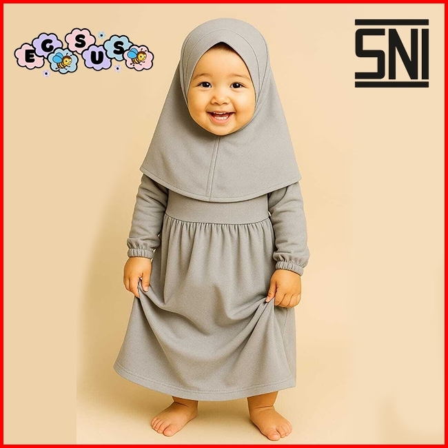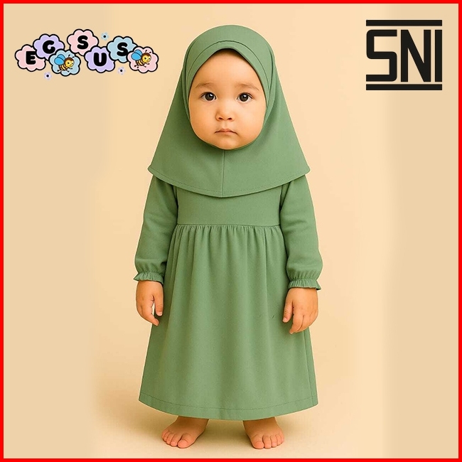 Egsus Gamis Hijab Bayi Shakira Anak Balita Perempuan Polos Katun Spandek Jersey 0 - 2 Tahun Sage