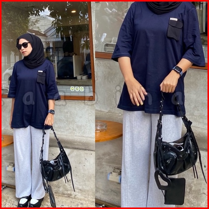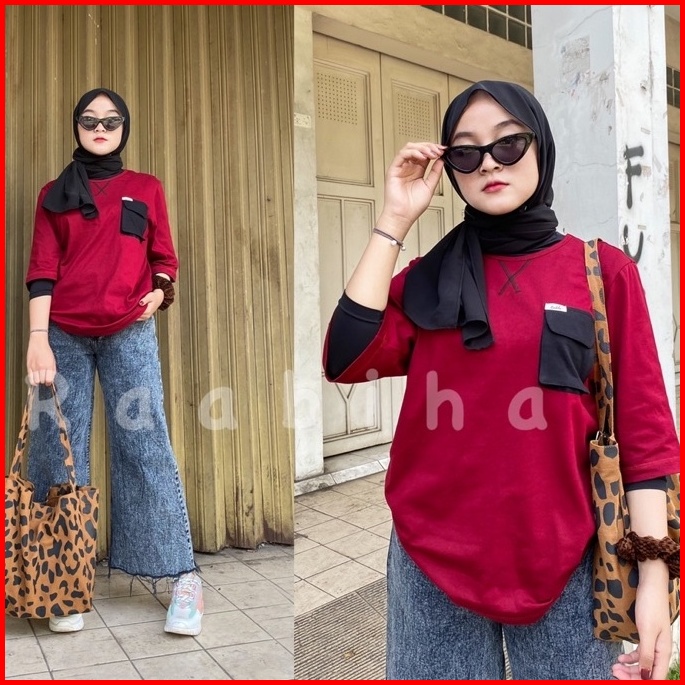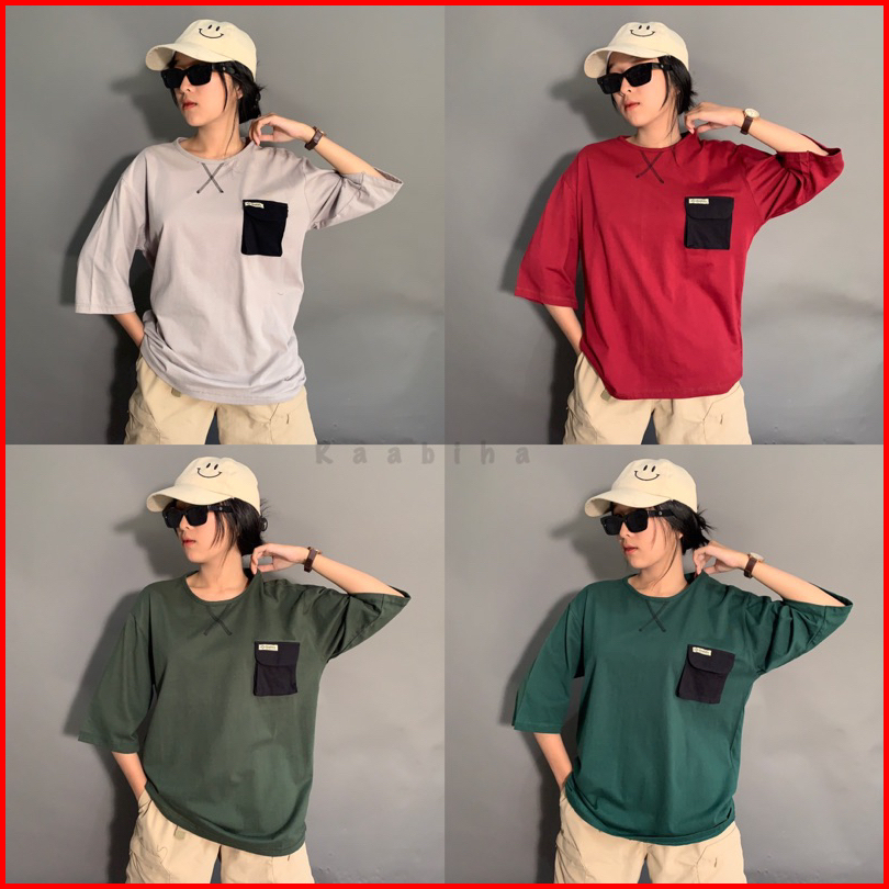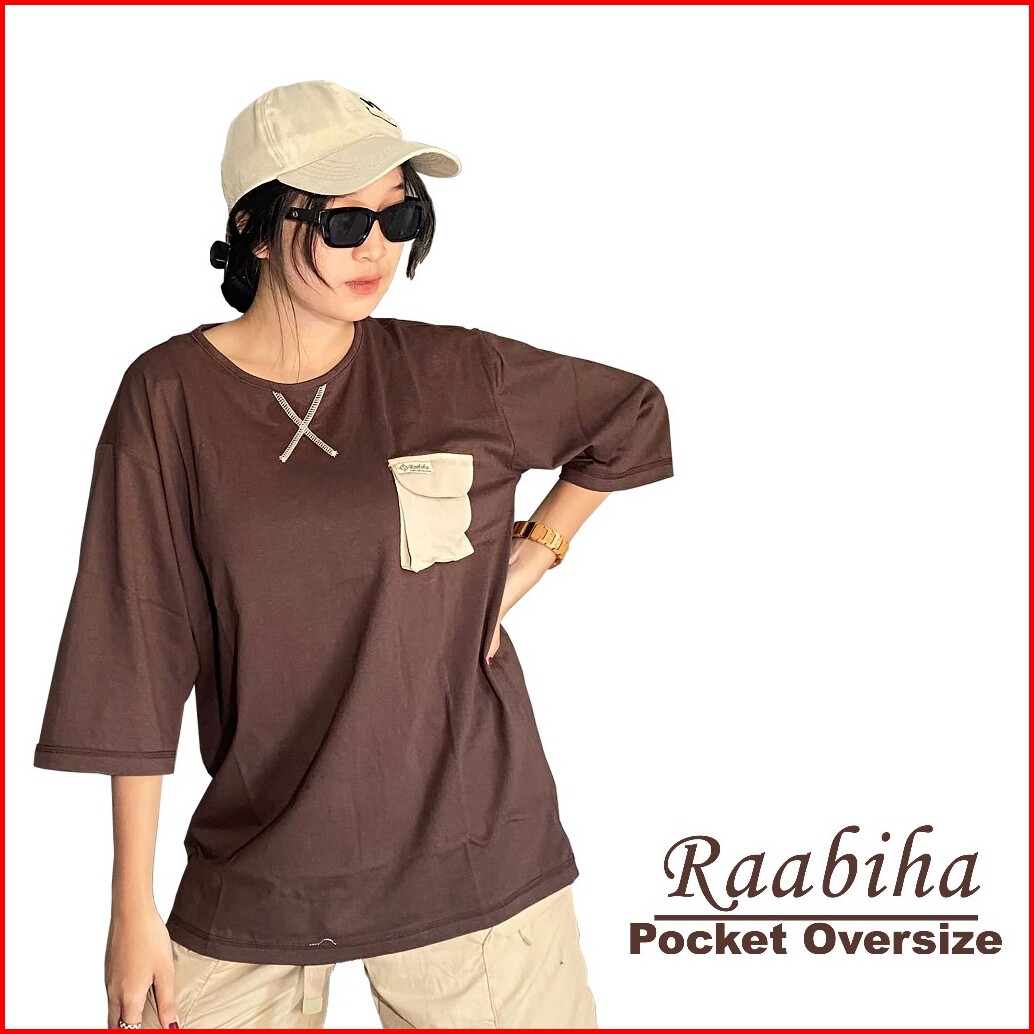 Raabiha T Shirt Oversize Pocket Kaos Unisex Kaos Cewe Cowo Atasan Pocket Casual