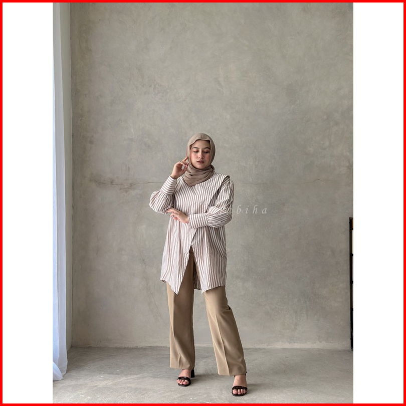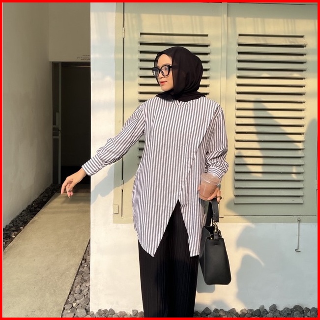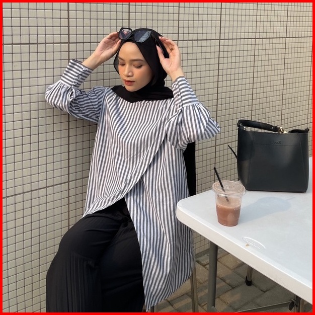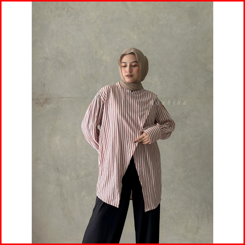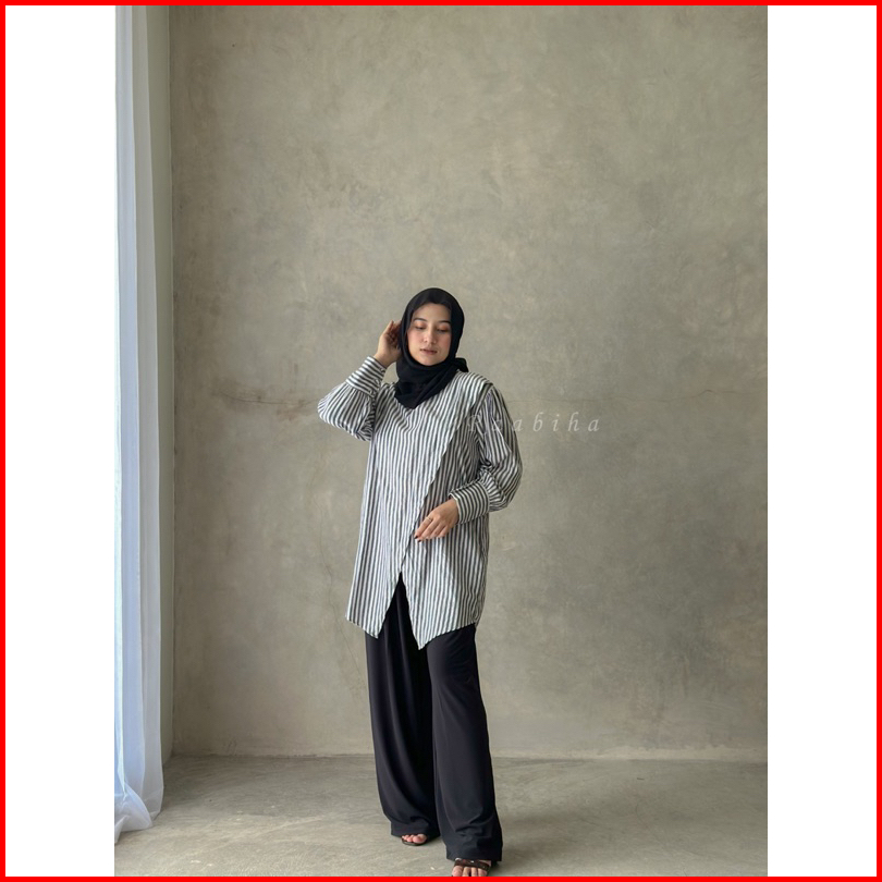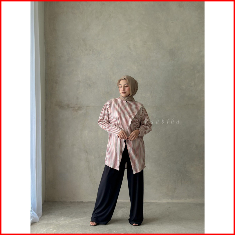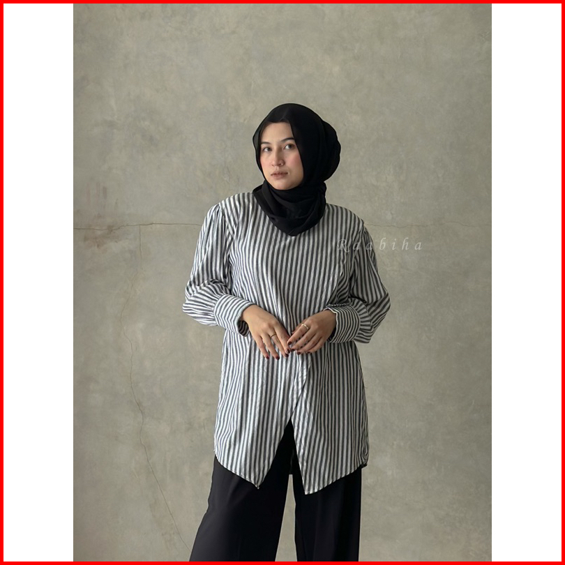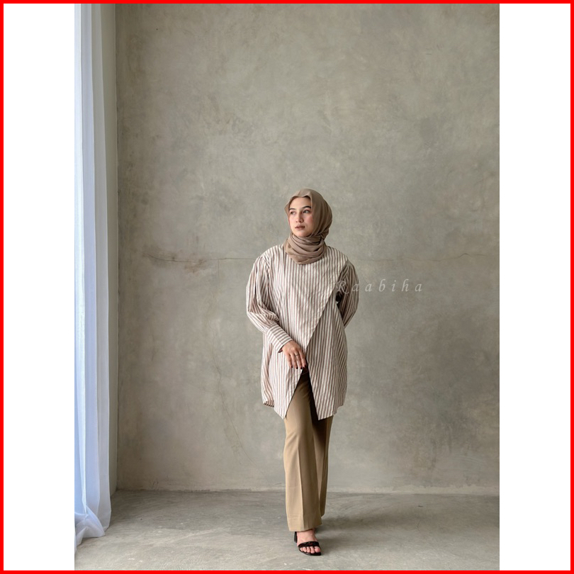 Raabiha Milly Blouse Salur Atasan Cotton Salur Kemeja Casual Salur Silang