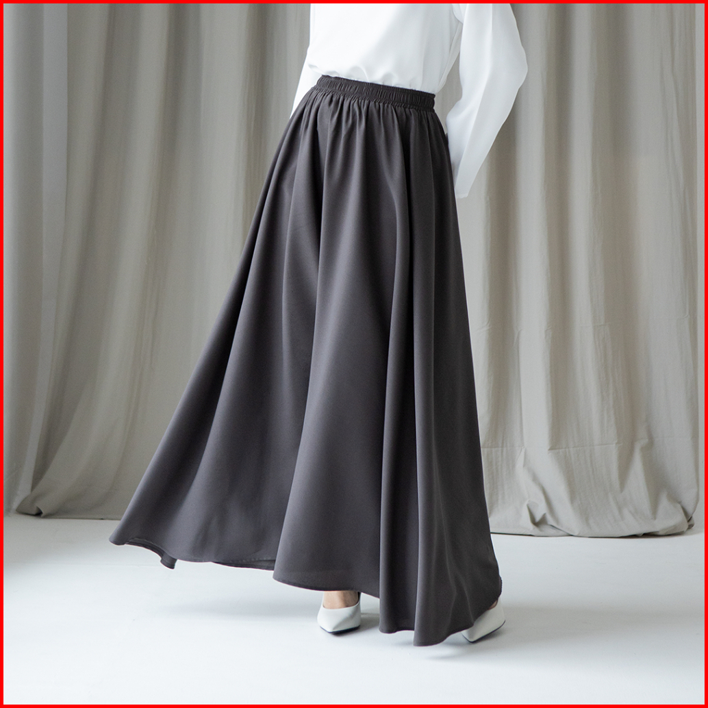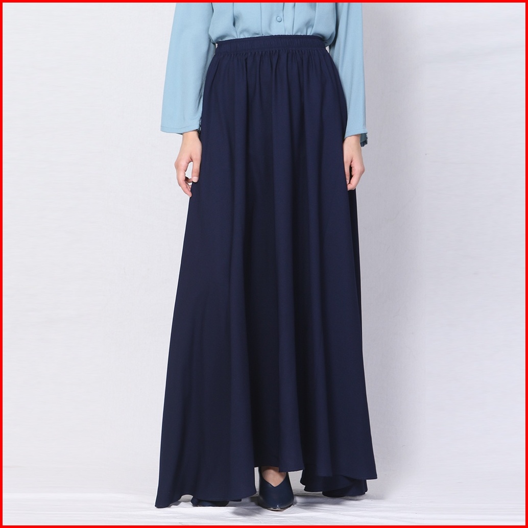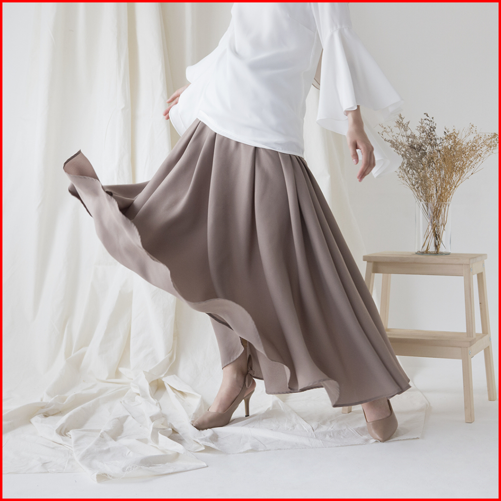Taraka By Aska Label - Maxi Rok Circle Swing Dengan Pinggang Karet Warna Taupe Black Redbud Navy
