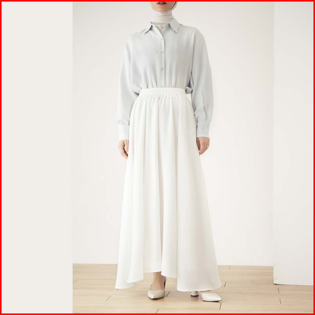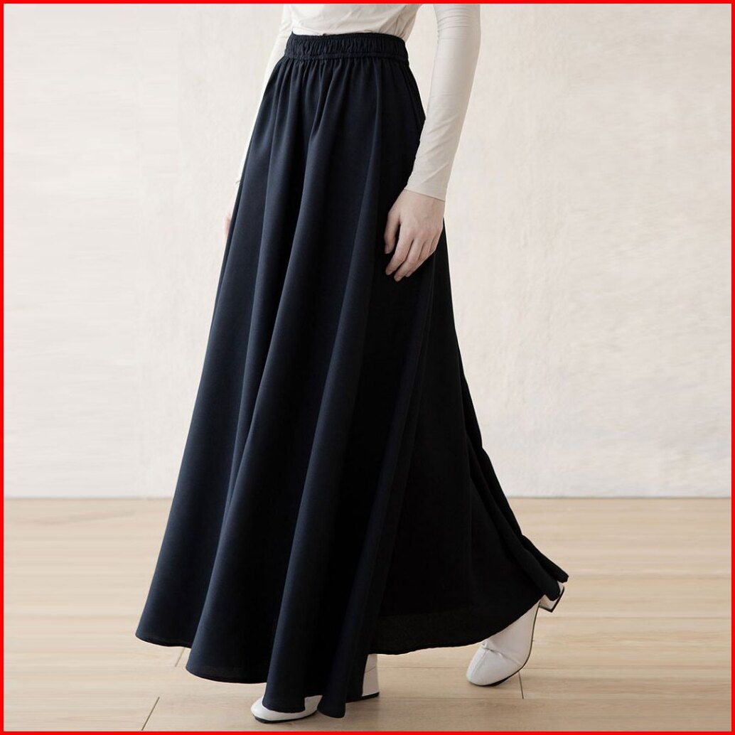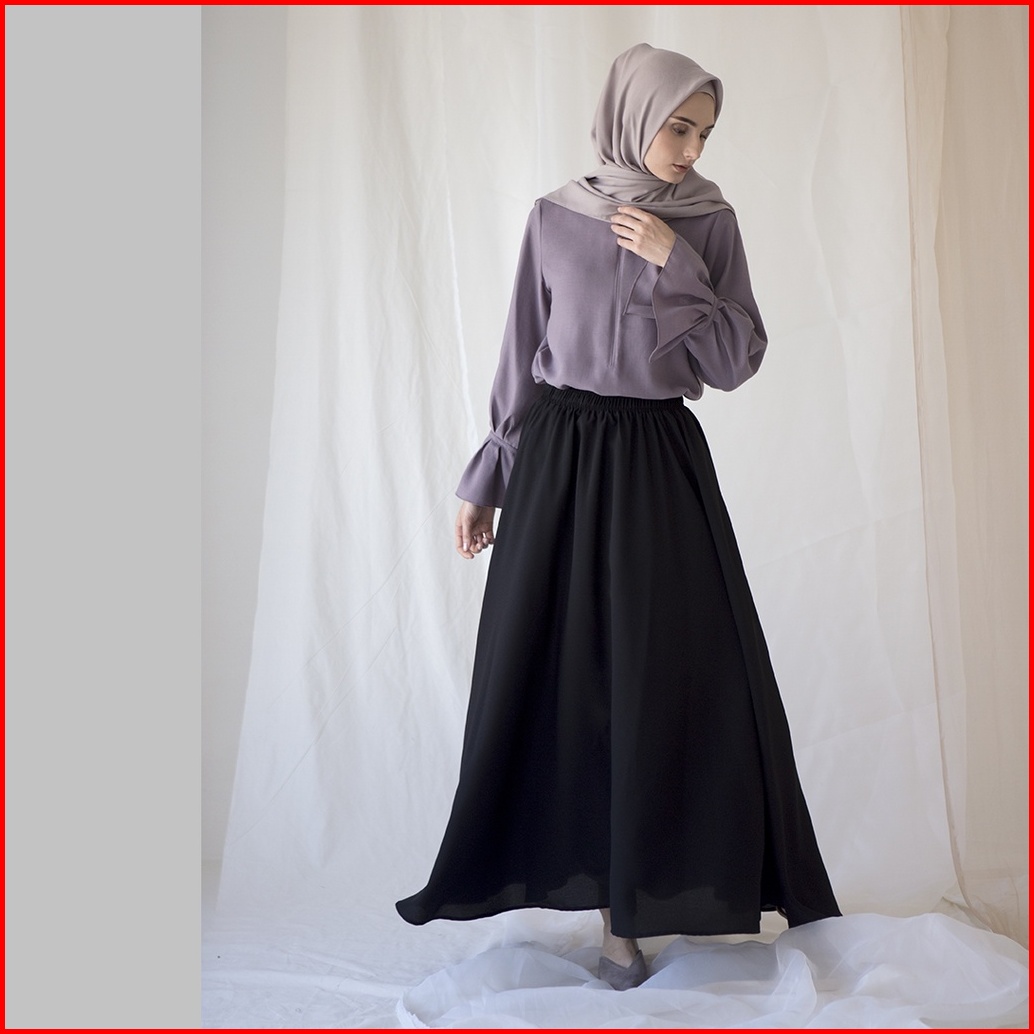 Taraka By Aska Label - Maxi Rok Circle Swing Dengan Pinggang Karet Warna Taupe Black Redbud Navy