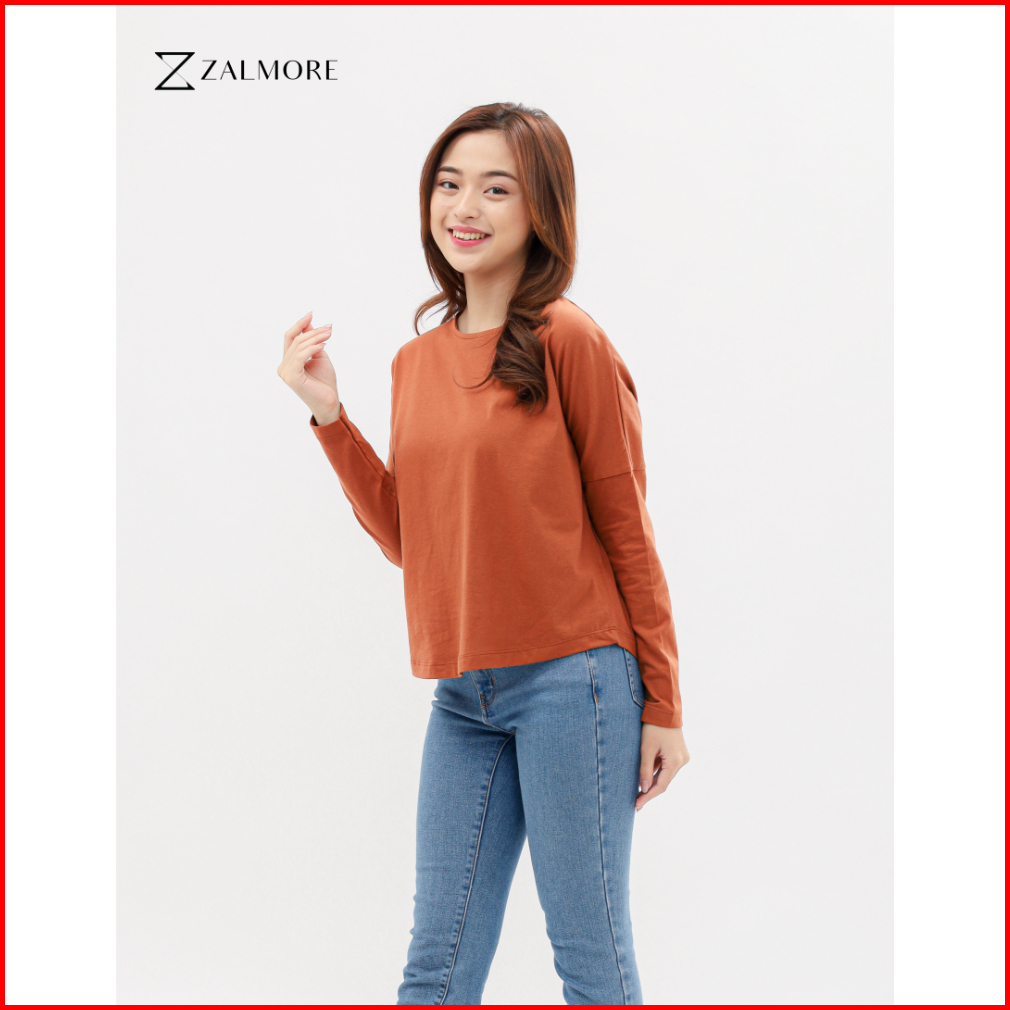 Zalmore Luma Cotton Longsleeve Loose Tee Premium Cotton - Kaos Lengan Panjang Wanita