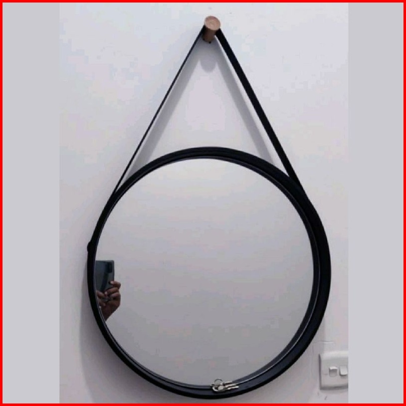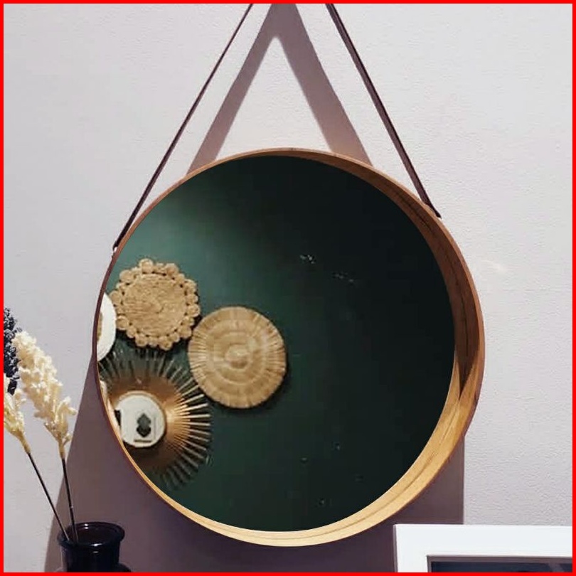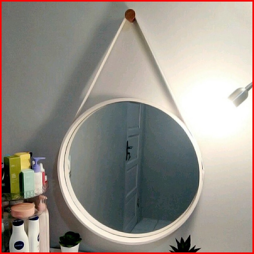 Cermin Bulat Aesthetic Kaca Cermin Frameless Gantung Tali
