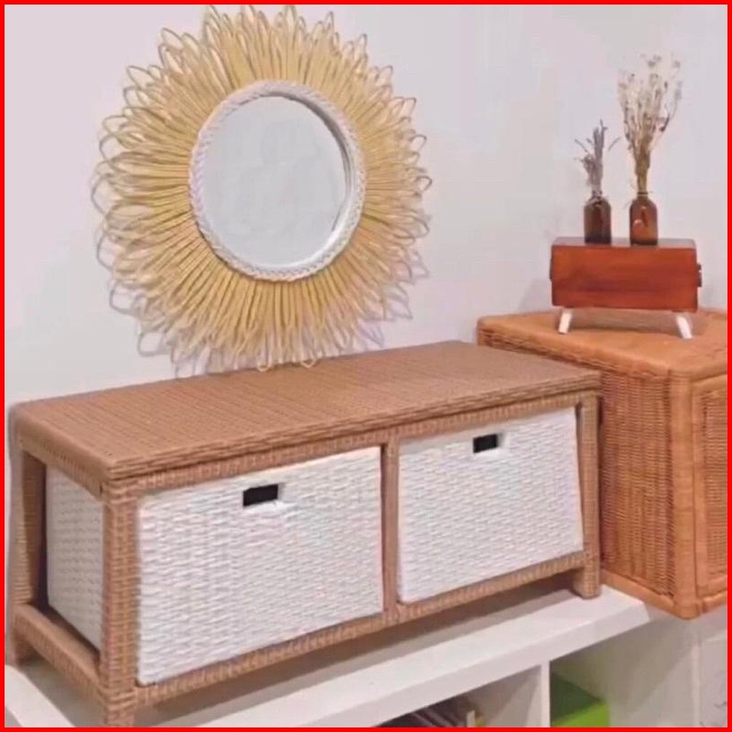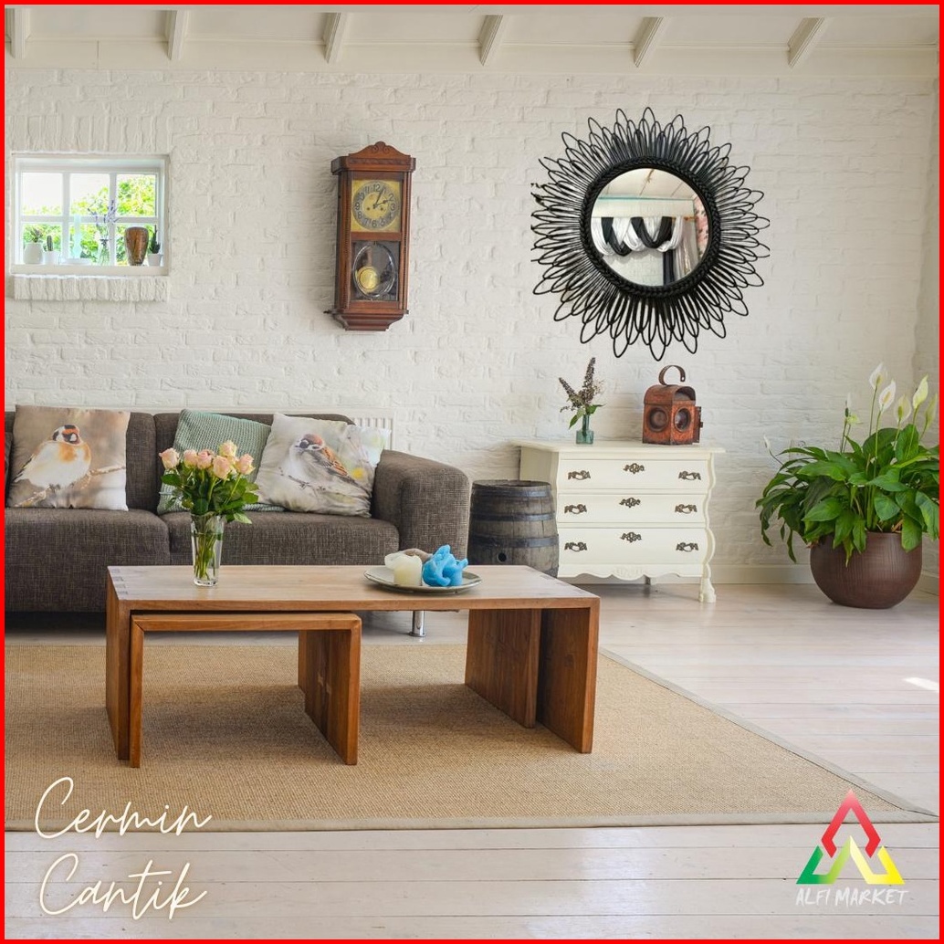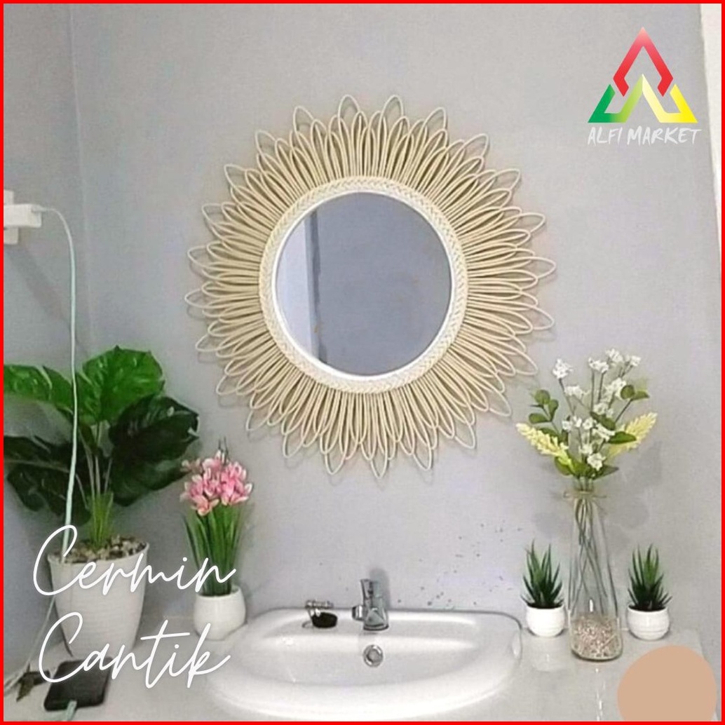 Alfi Kaca Rotan Model Baru Cermin Cantik Aesthetic Mirror Hiasan Dinding Home Decor Tegak