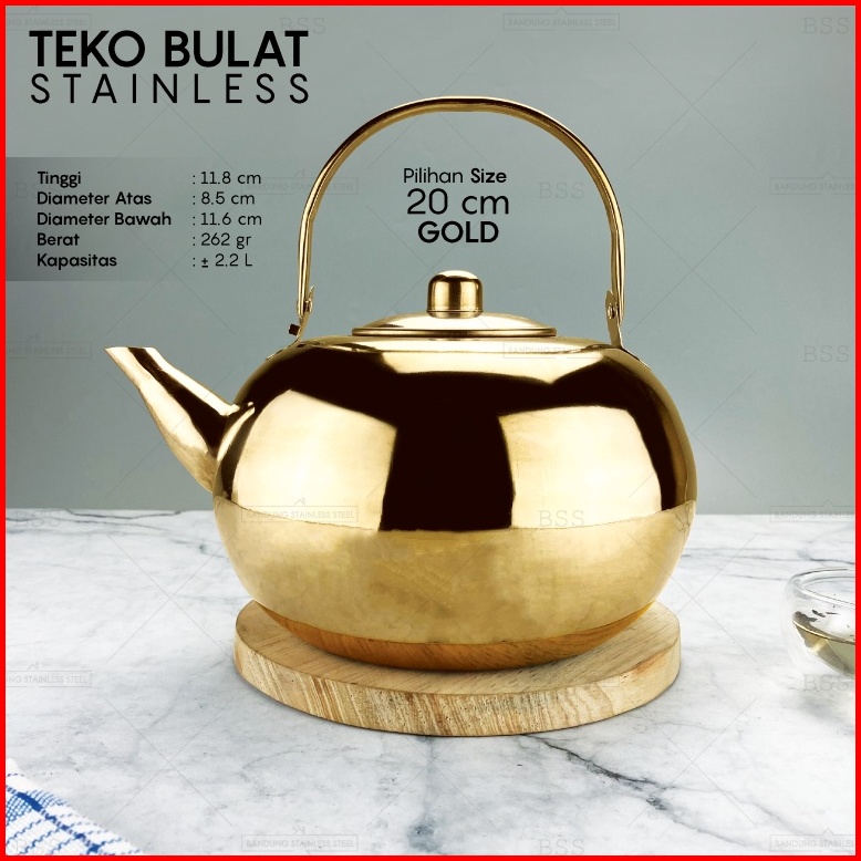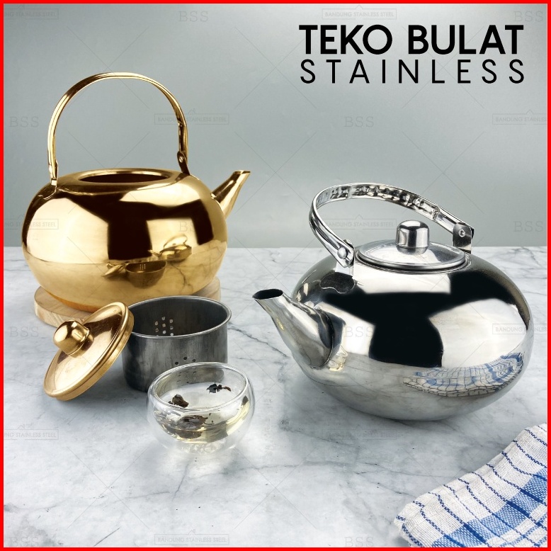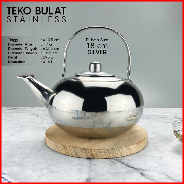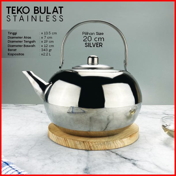 Teko Stainless Bulat 1.2l 1.6l 2.2 Liter Tea Pot Air Panas Teh Kapasitas Besar Banyak