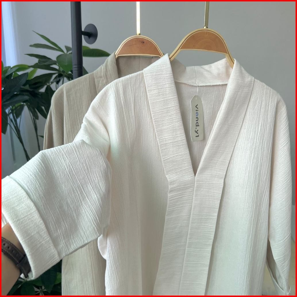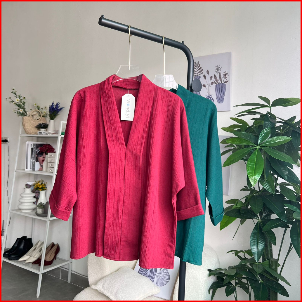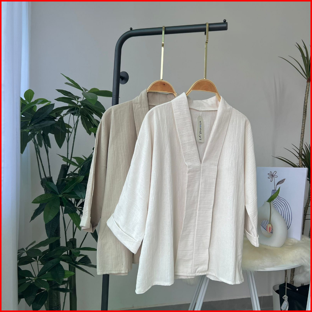 Blouse Korea V Neck Casual Blouse Wanita Kringkel Linen E12