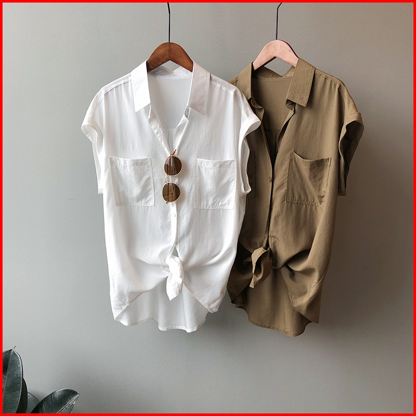 Konveksibandung - Shimer Kemeja Twill Polos Wanita Tanpa Lengan Model Korean Style Ukuran M L Xl Xxl