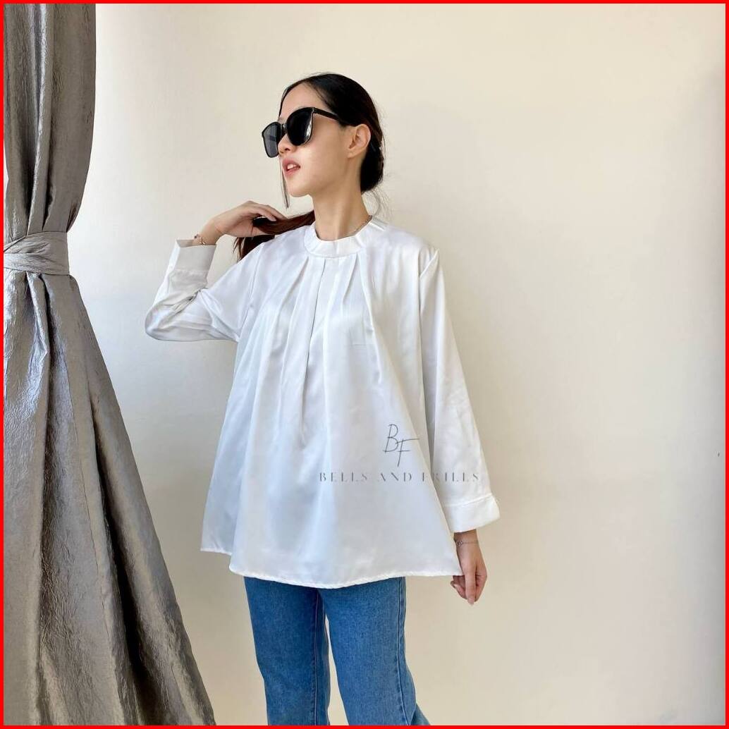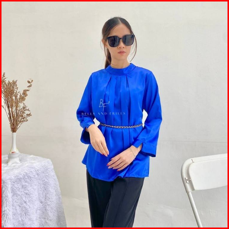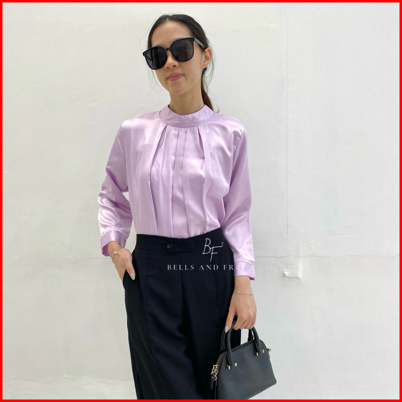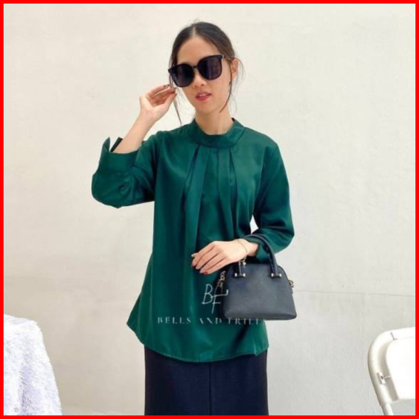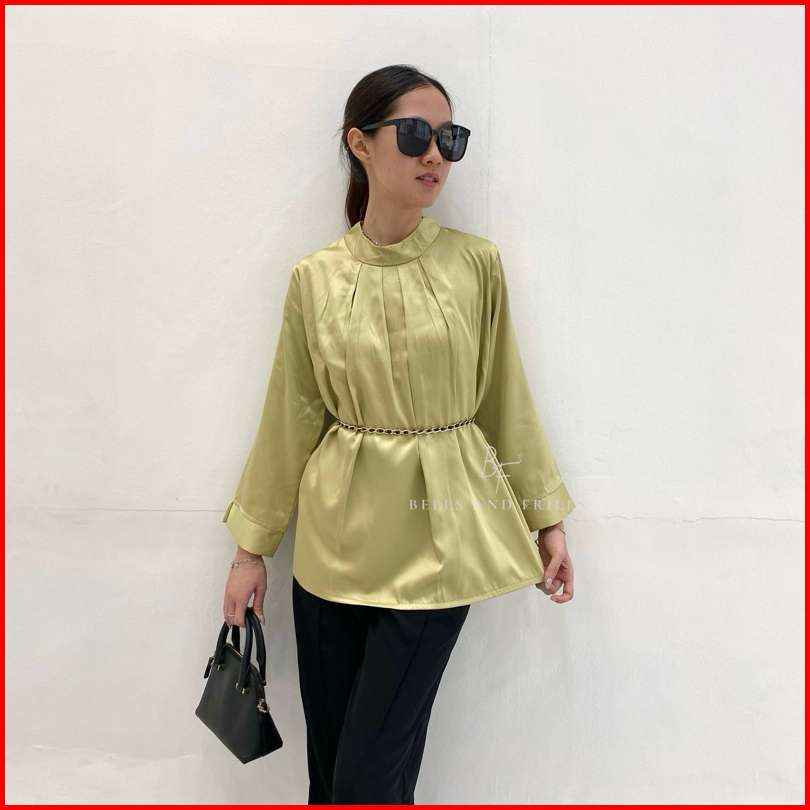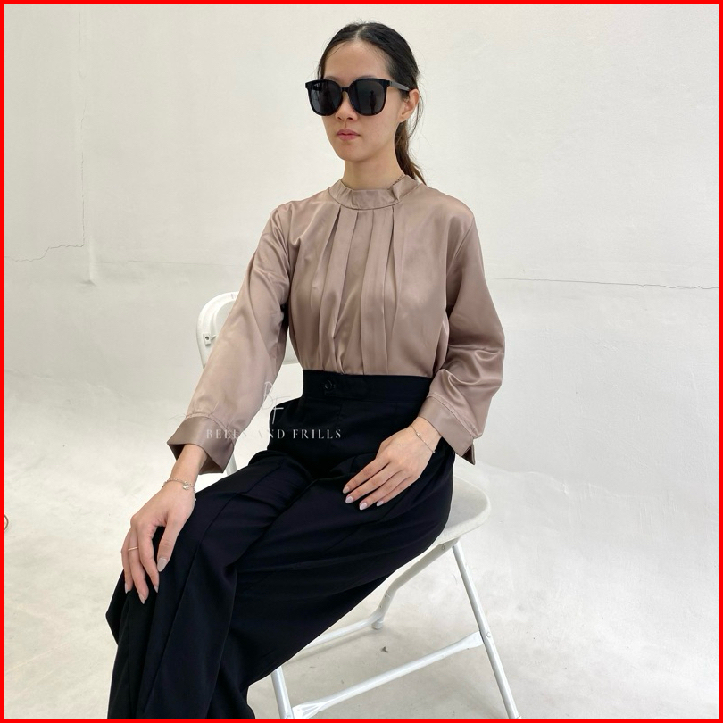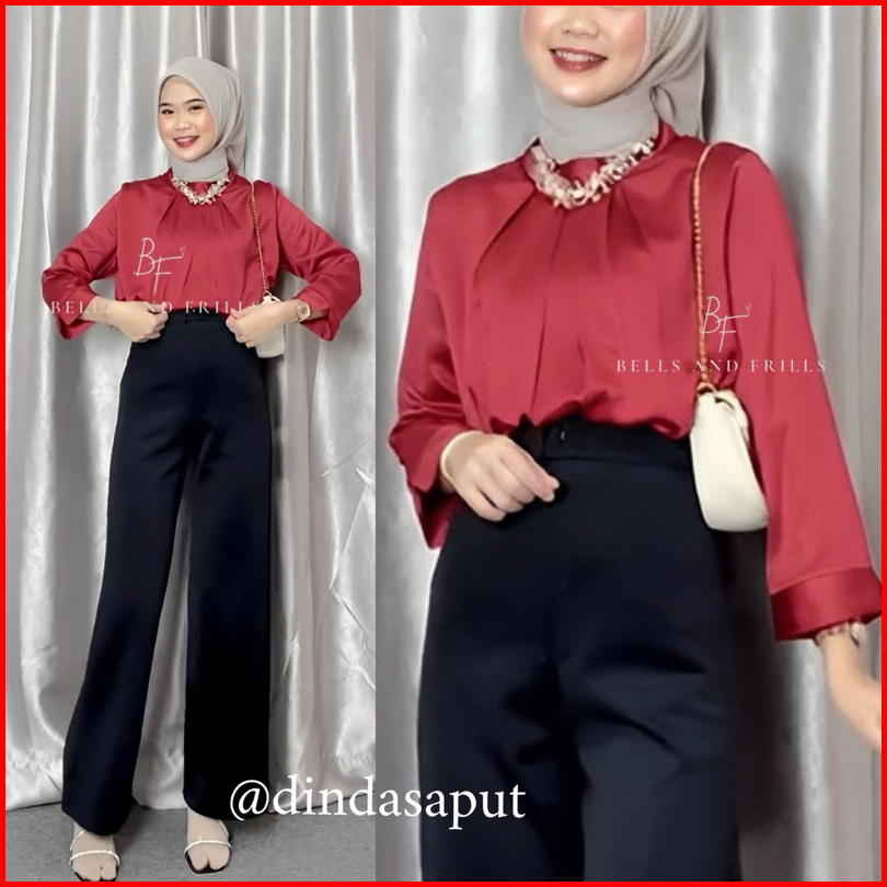 Devy Blouse Satin Atasan Leher Tinggi Hijab Friendly Blus Formal Silk 0418