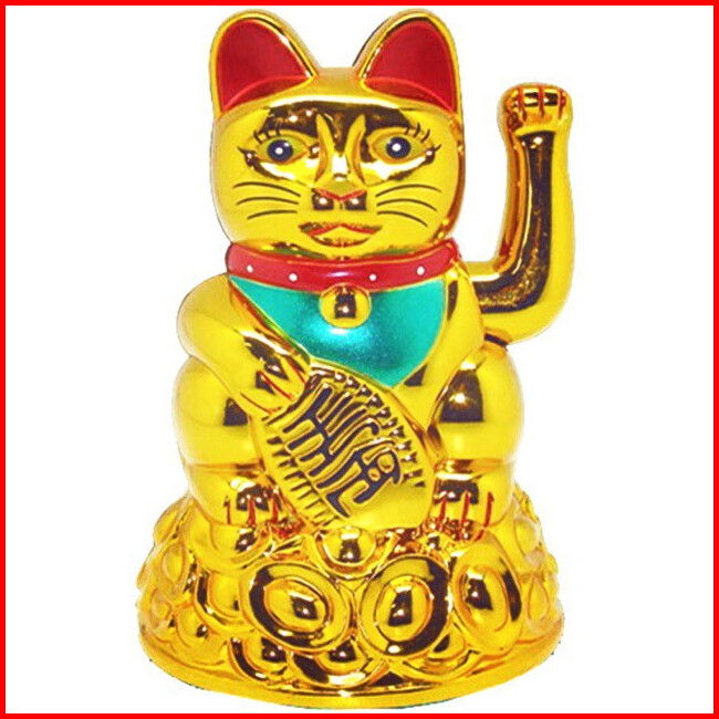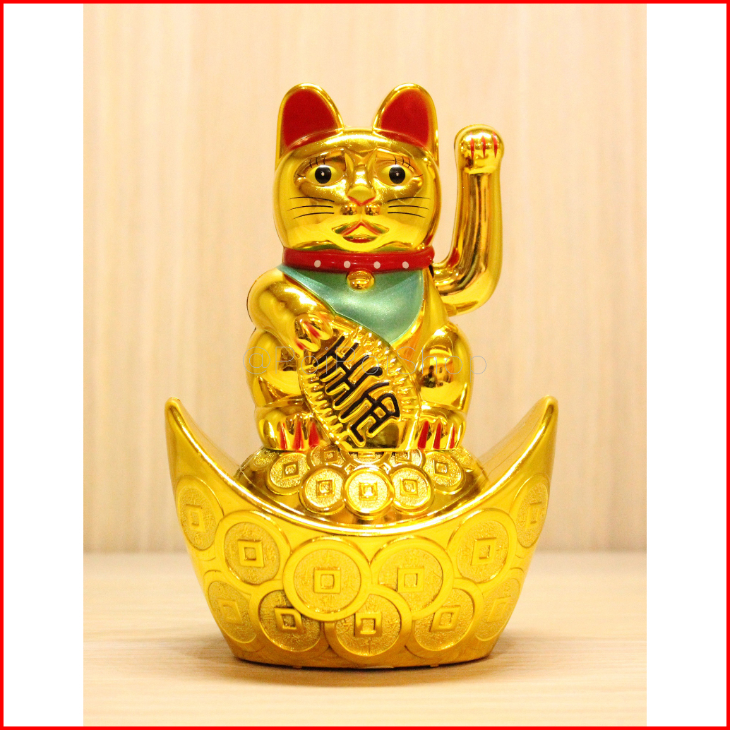 Kucing Hoki Koin Patung Boneka Kucing Hoki Rejeki Yuan Bao Maneki Neko Lucky Cat Qian 12cm