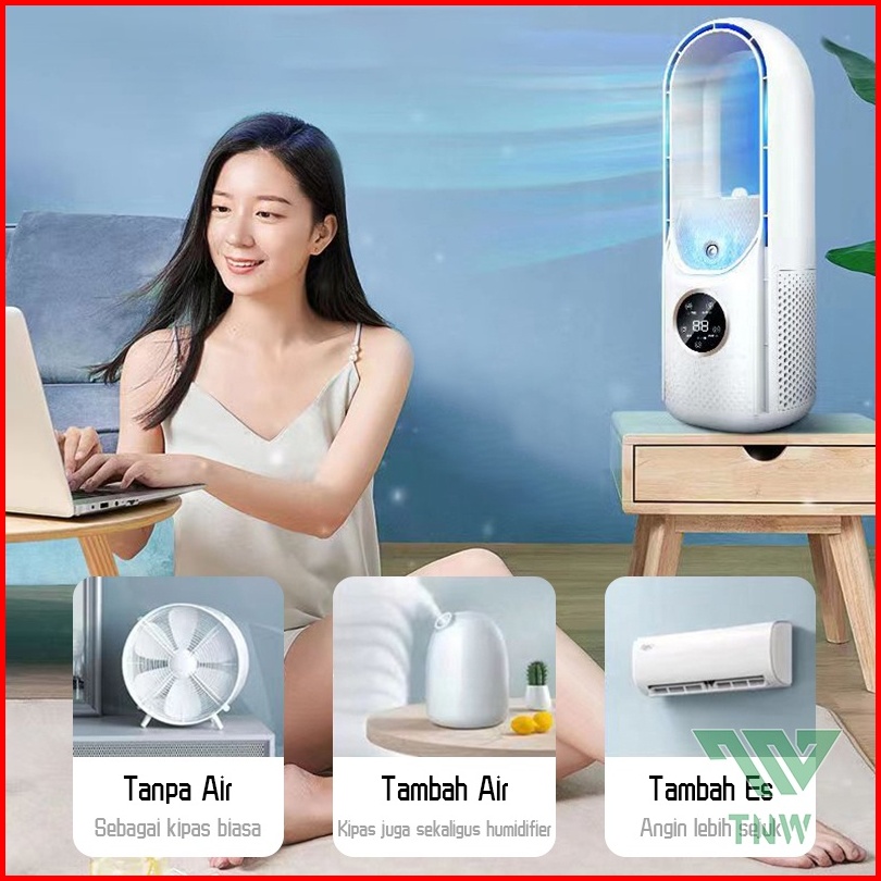 Tnw Air Cooler Fan Ac Mini Kipas Penyejuk Portabel Pendingin Ruangan Air Conditioner Humidifier Bladeless Fan Dengan Lam
