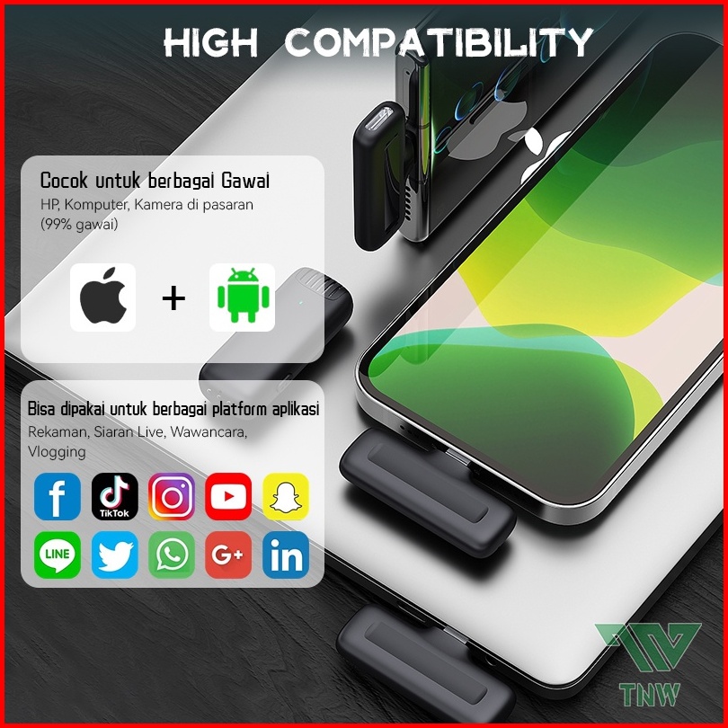 Tnw X8 Nirkabel Lavalier Mikrofon Mini Microphones Dengan Penerima Dan Charging Case Kompatibel Untuk Ponsel Pad Kompute