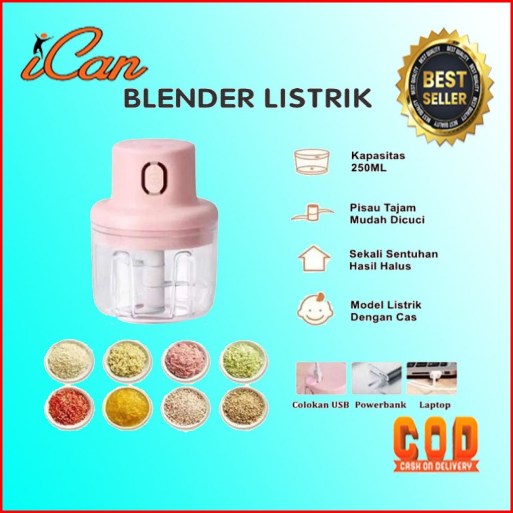 Usb Mini Chopper 250 Ml Elektrik Tanpa Kabel Food Processor Blender Portable Multifungsi Penghalus Bumbu Kacang Tanah Ba