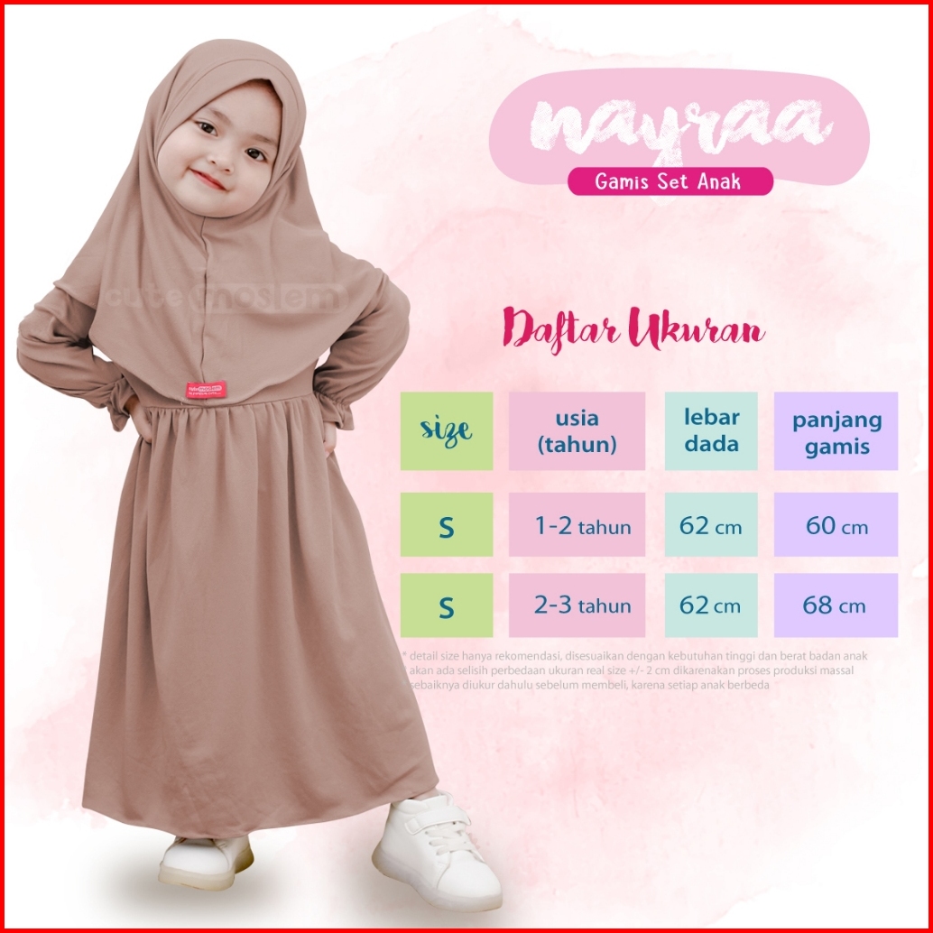 Gamis Set Jilbab Cutemoslem Nayraa Anak S-bahan Airis High Quality
