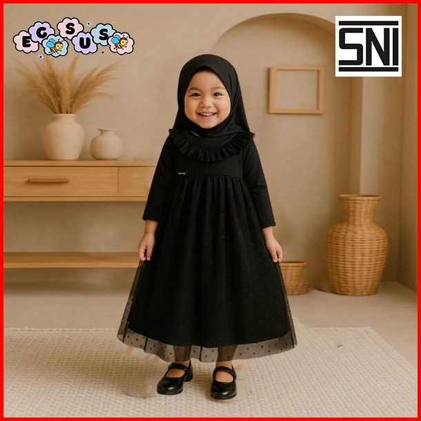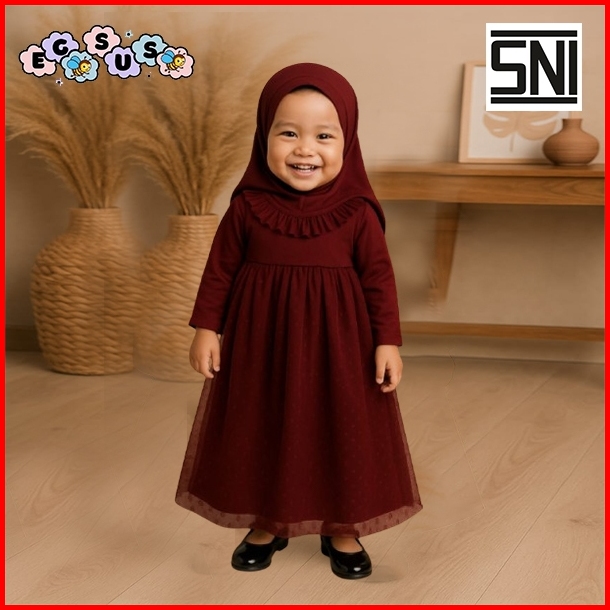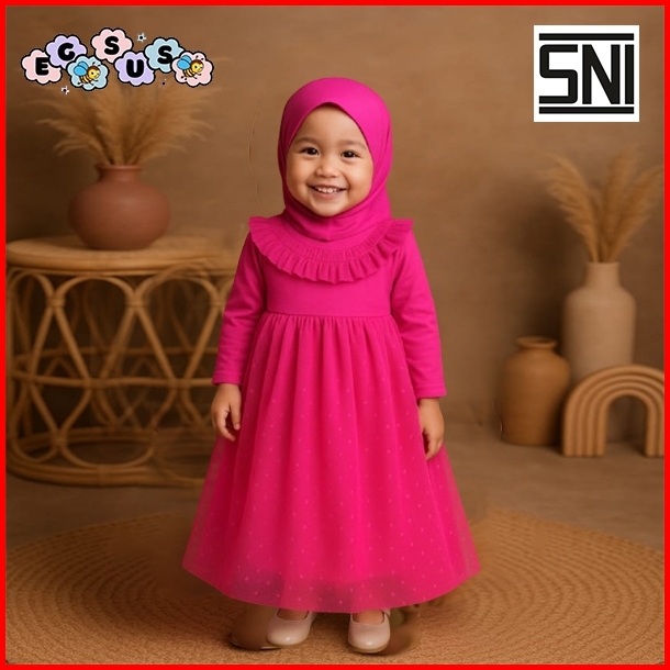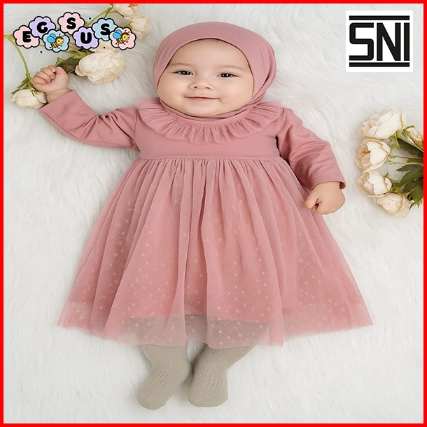 Egsus Gamis Hijab Bayi Renda Tutu Tile Dotti 0 - 4 Tahun Pakaian Muslim Balita Perempuan Denim