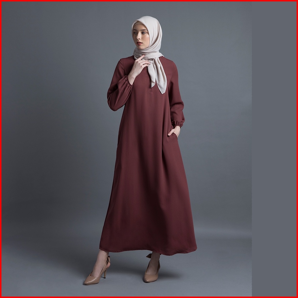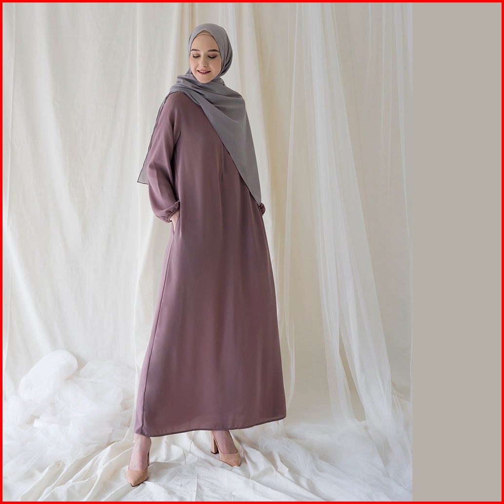 Basic Sada By Aska Label - Gamis Polos Dengan Kantong Dan Busui Friendly Bahan Crepe Warna Putih Offwhite Hitam Black Ma