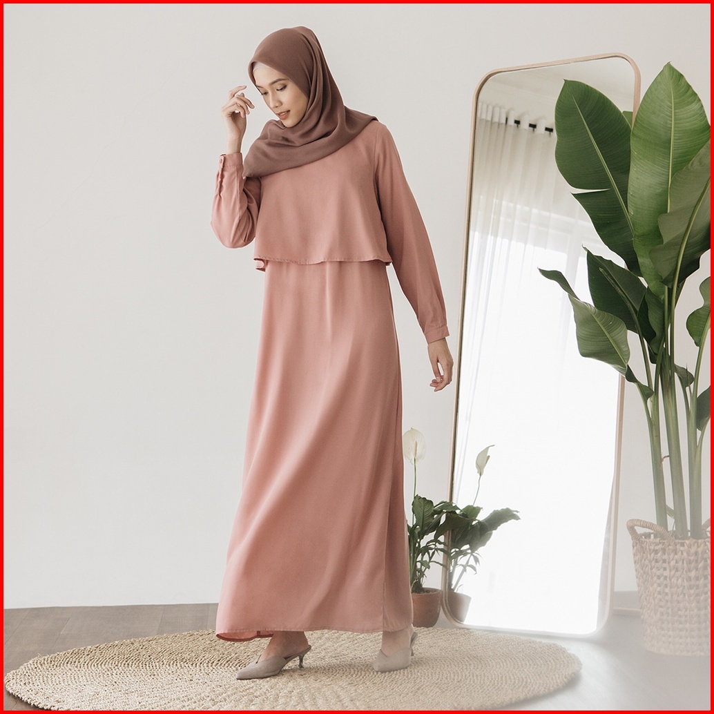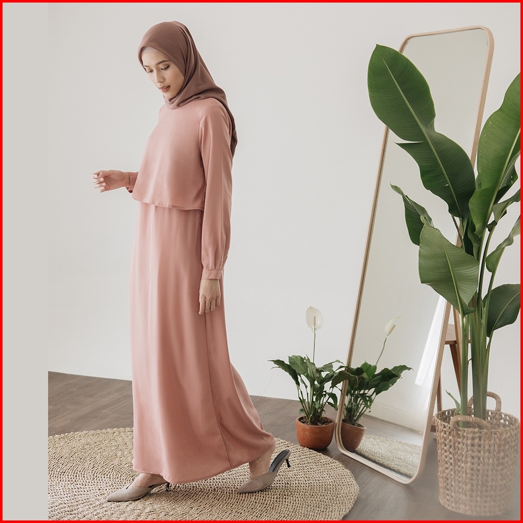 Askara By Aska Label - Gamis Wanita Panjang Dress Wanita Lengan Panjang Busui Friendly Bahan Crepe Warna Maroon Pink Mau