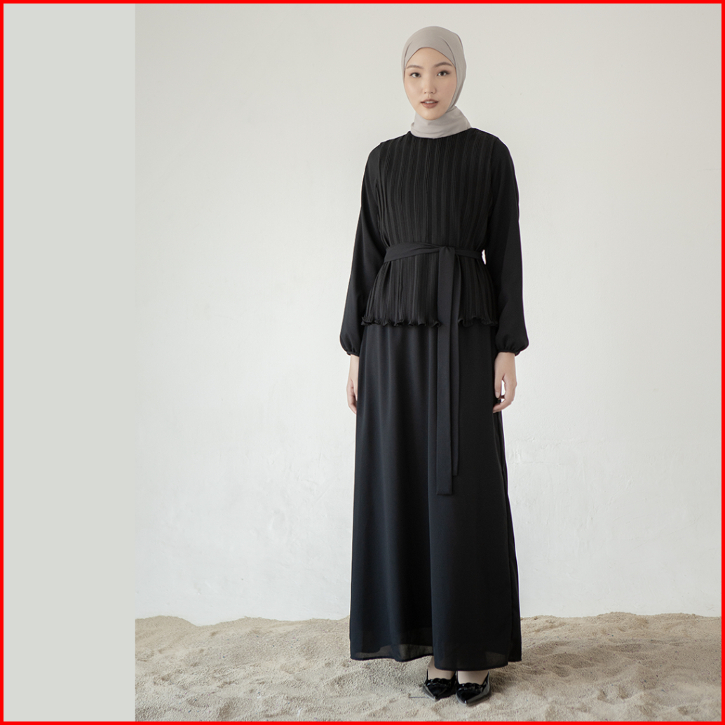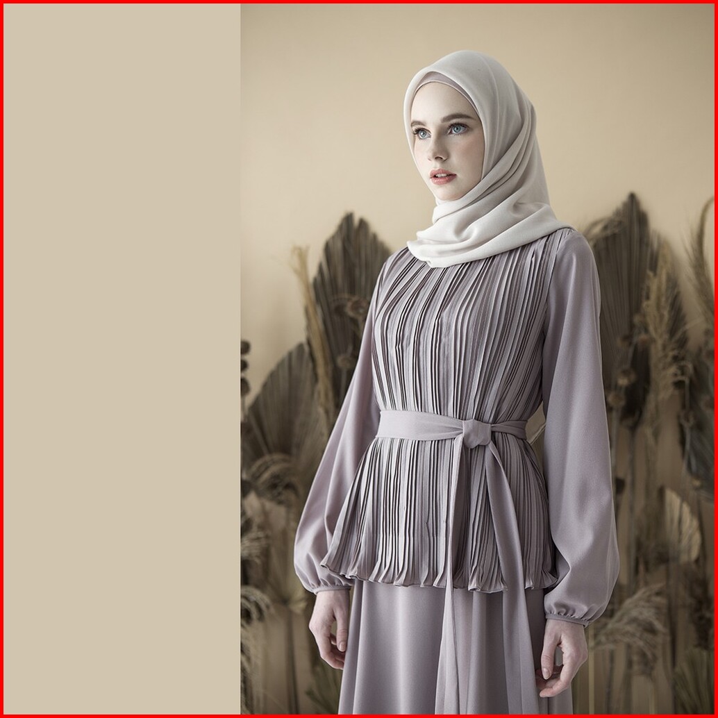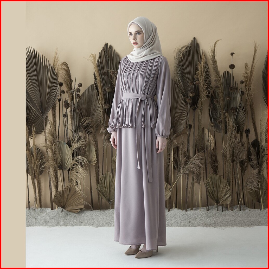 Mayang Dress By Aska Label - Gamis Plisket Busui Friendly Warna Abu Navy Mauve