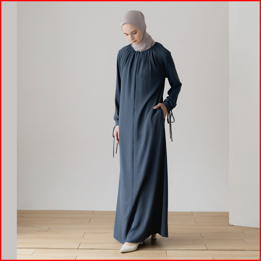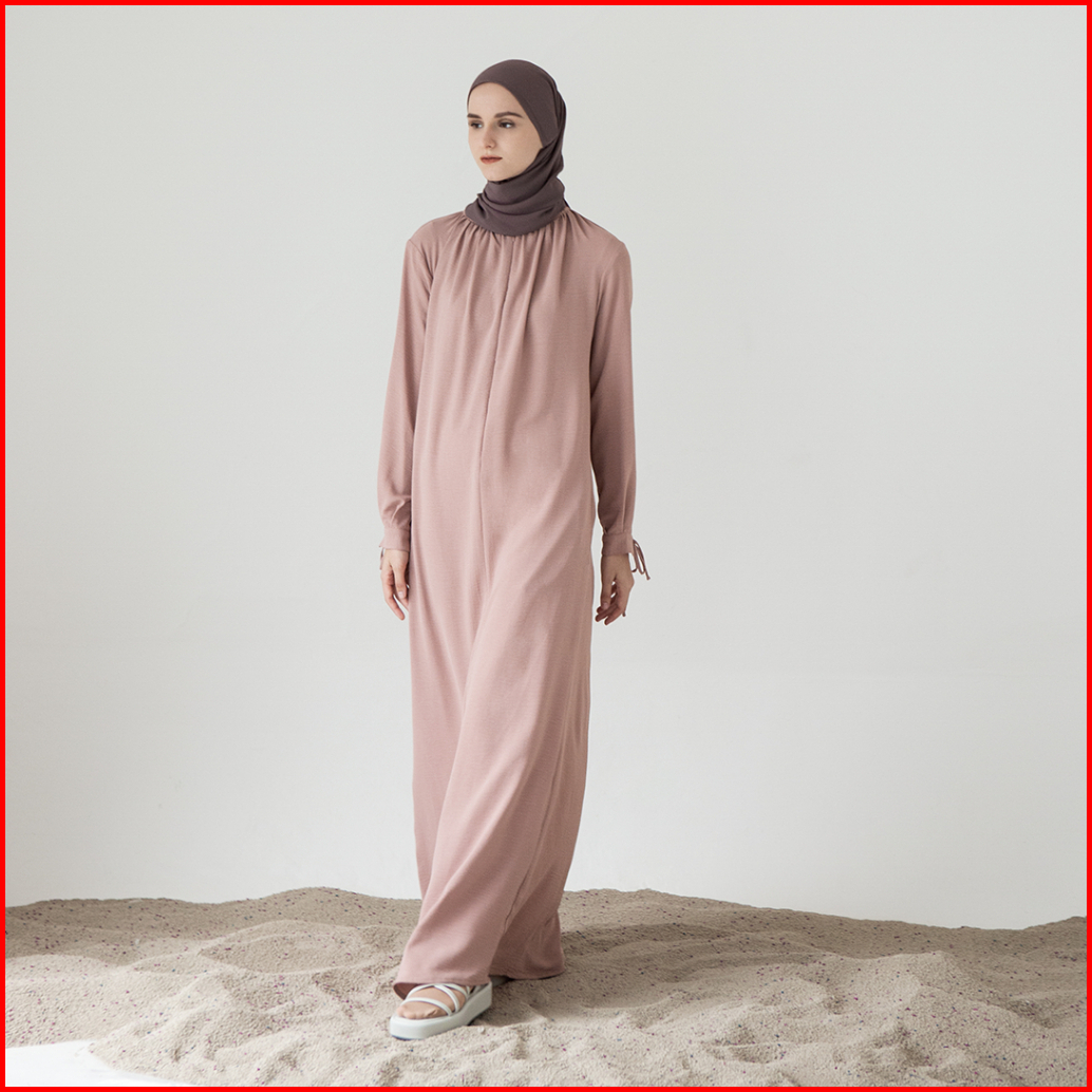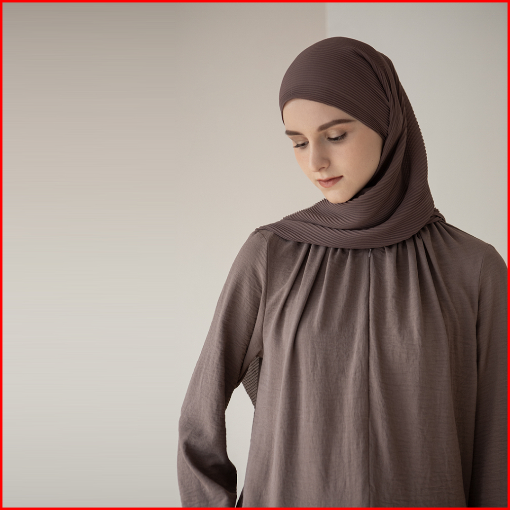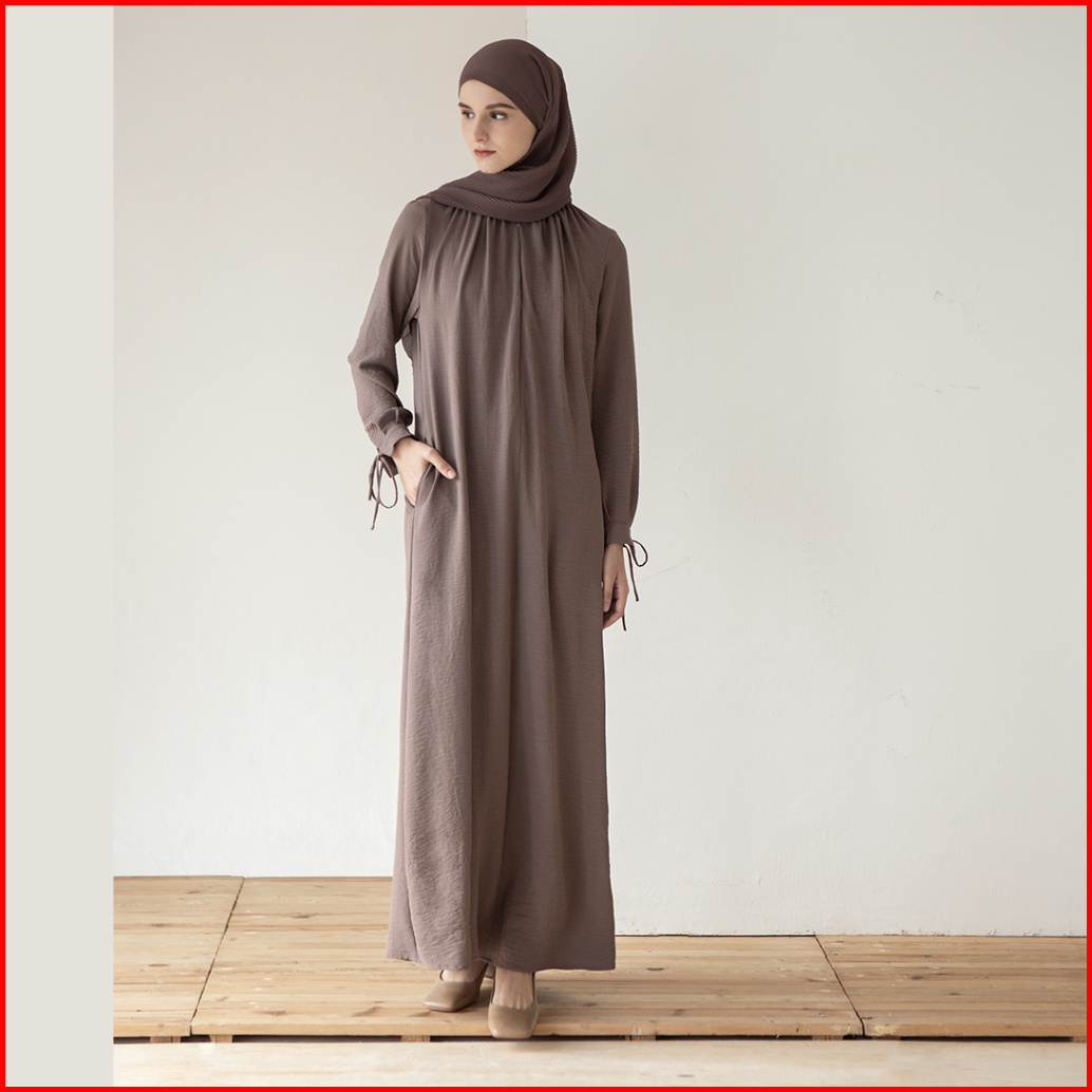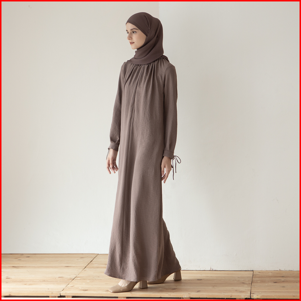Khansa By Aska Label - Dress Wanita Polos Gamis Basic Wanita Bahan Crinkle Anti Kusut Busui Friendly Warna Mocca Dusty P