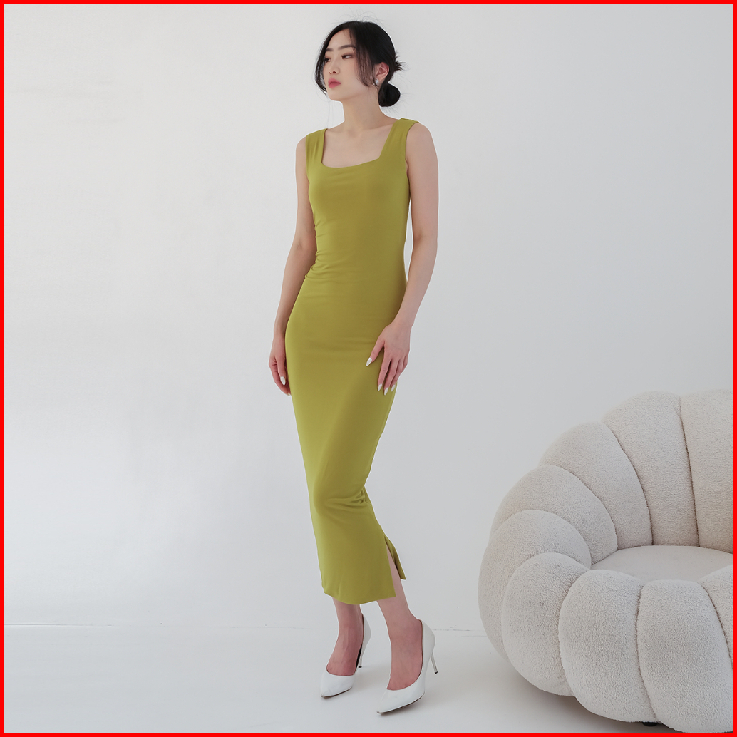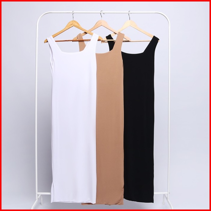 Nzinga Eva Midi Midi Dress Wanita Slim Fit Polos - Baju Tanpa Lengan Square Neck Stylish S - Xxl
