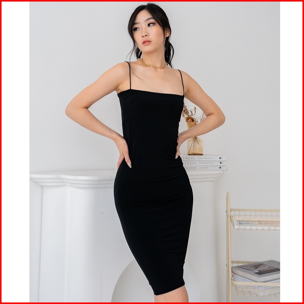 Nzinga Spaghetti Midi Dress Wanita Dress Ketat Casual Party Look Ukuran S - Xxl