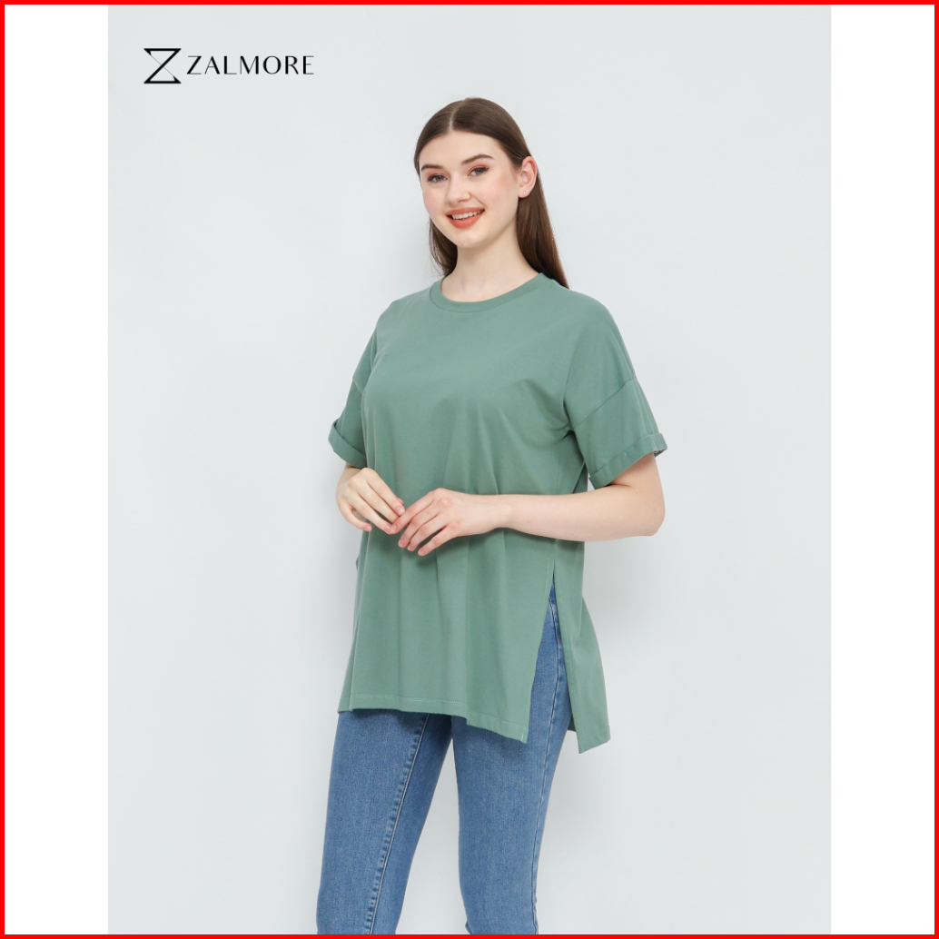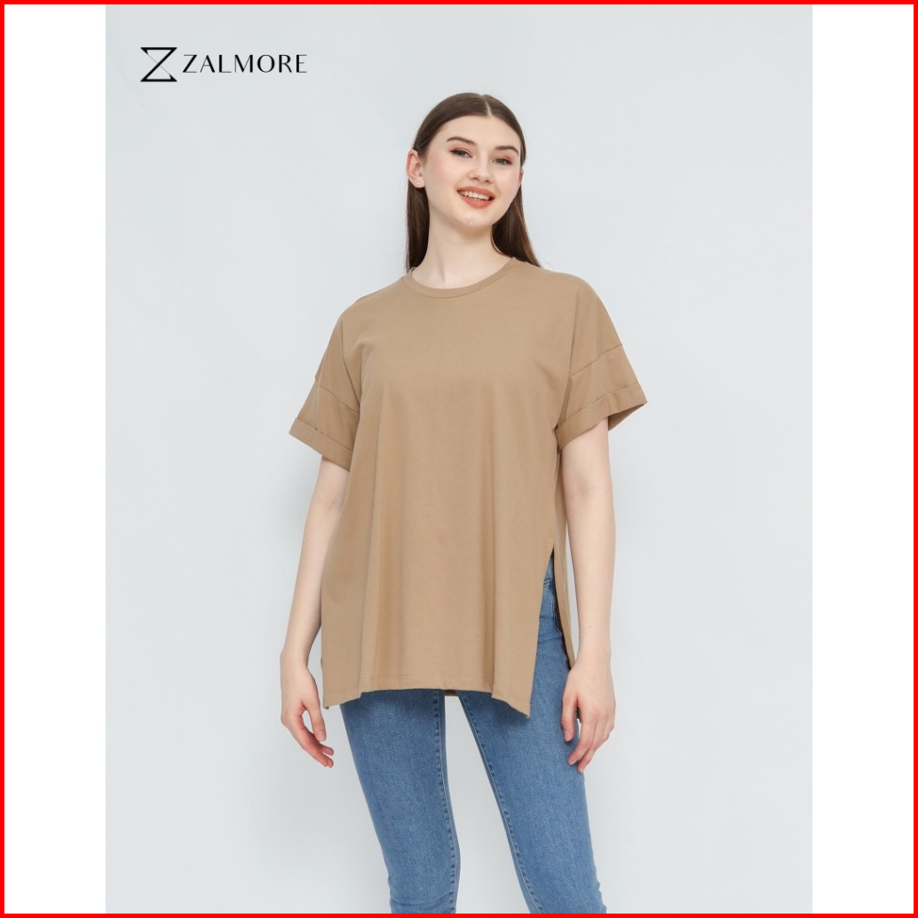 Zalmore Luma Cotton Oversize T-shirt With Slit Premium Cotton - Kaos Oversize Wanita