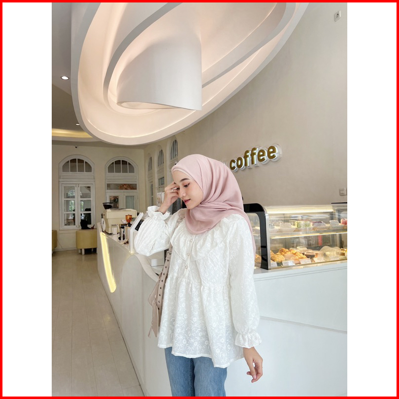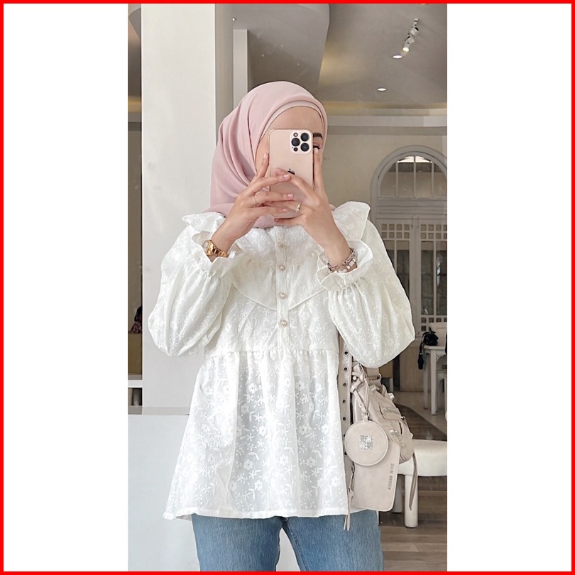 Zea - Irene - Blouse Atasan Katun Bordir Putih Lebaran Kondangan